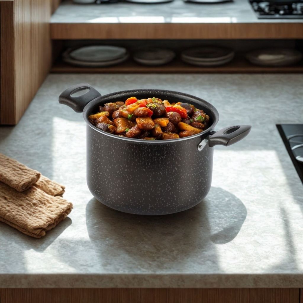 Caldeirão Antiaderente Tampa Aluminio 24Cm 6L Preto Nacional
