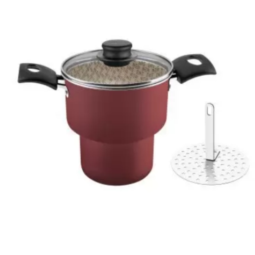 Panela Cuscuzeira Cozi Vapore Tramontina Aluminio Antiaderente 14cm Turim Vermelha