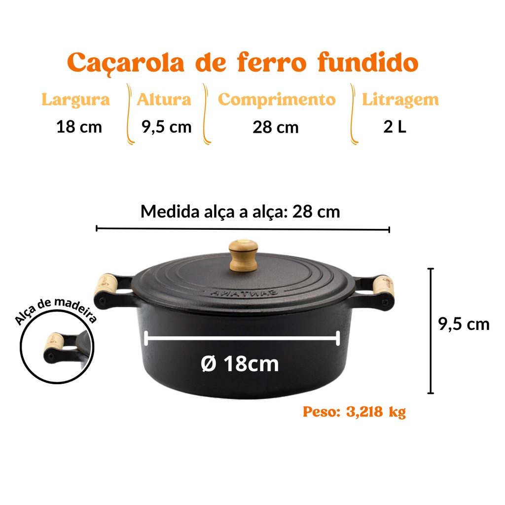 Panela De Ferro Caçarola de Ferro Fundido com Tampa de Ferro 2l n 18 Santana