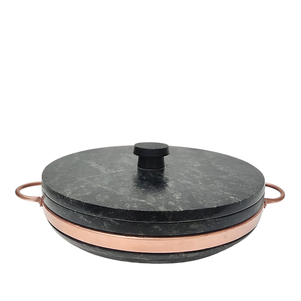 Panela De Paella De Pedra Sabão Com Tampa - 28 Cm