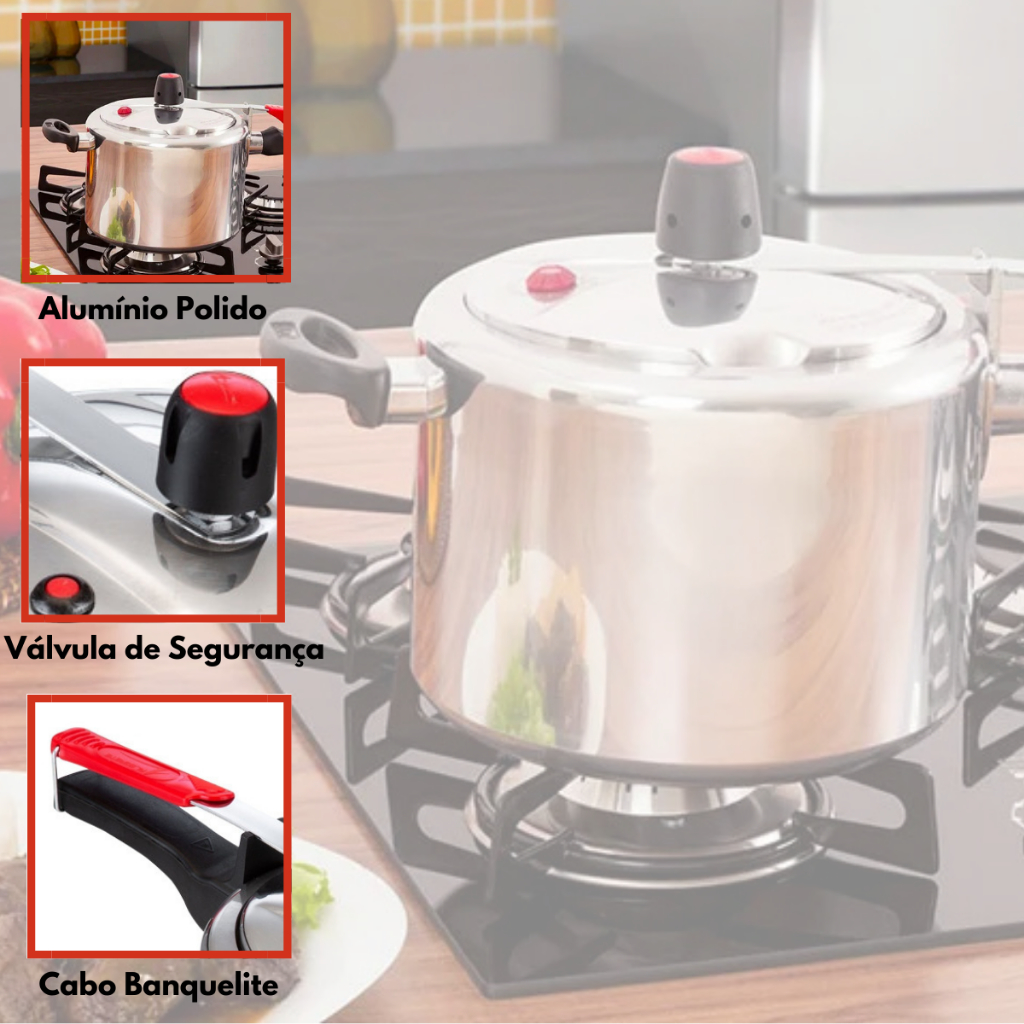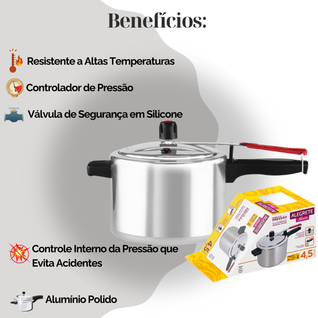 Panela De Pressão 4,5 Litros Cozimento Rápido Alumínio Polido Inmetro Classic Alegrete
