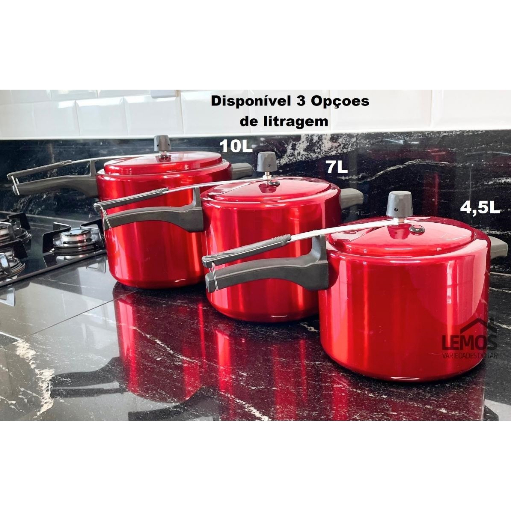 Panela De Pressão Vermelha 4,5 Litros Em Alumínio Testada e Certificada Pelo Inmetro