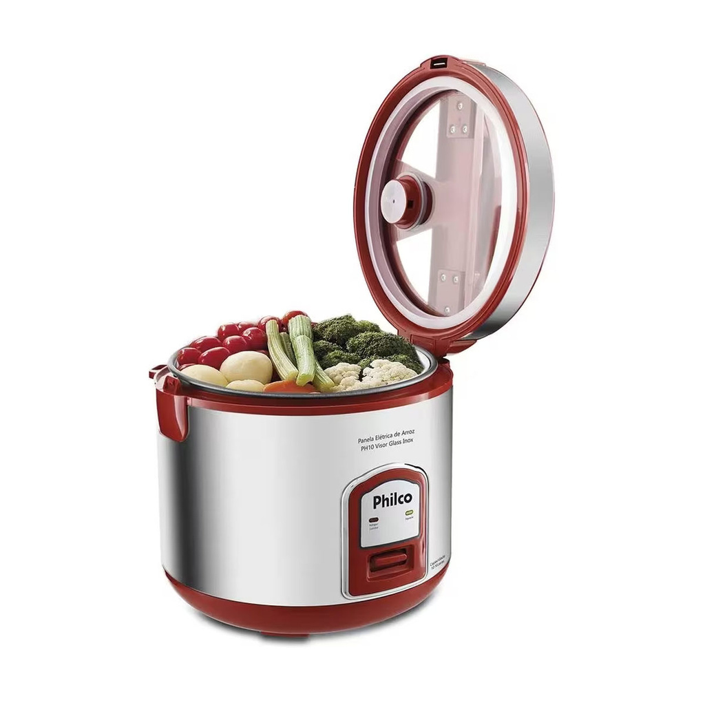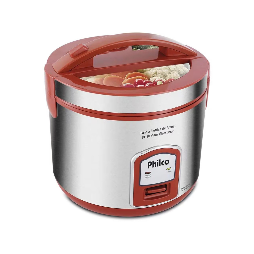 Panela Elétrica Arroz Philco PH10V Visor Glass Inox 10 Xícaras Vermelha