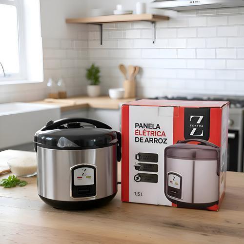 Panela Elétrica De Arroz 127V Anti Aderente Cozinha Rápido Mantém Aquecido 8 Xicaras Inox 500w 1.5L