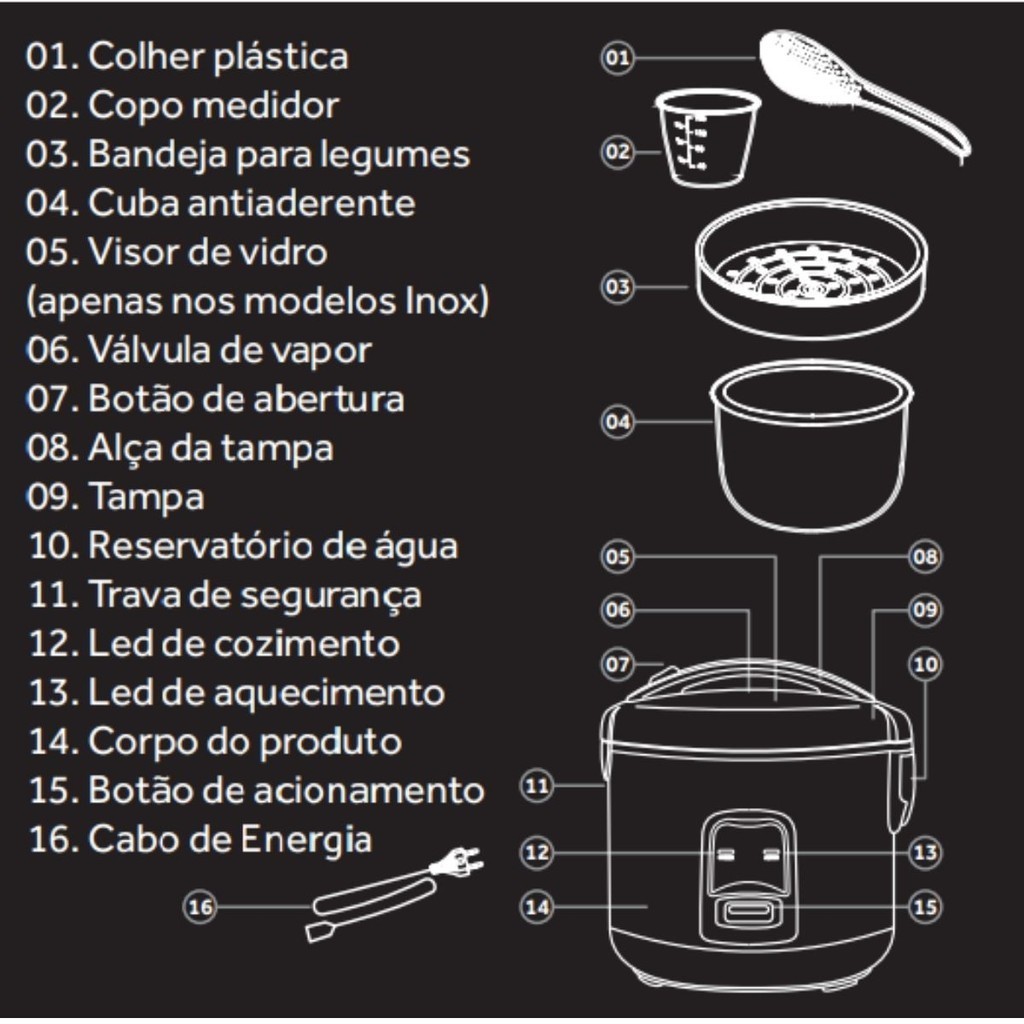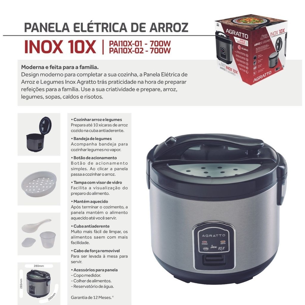 Panela Elétrica De Arroz e Legumes Visor Vidro 127V Agratto