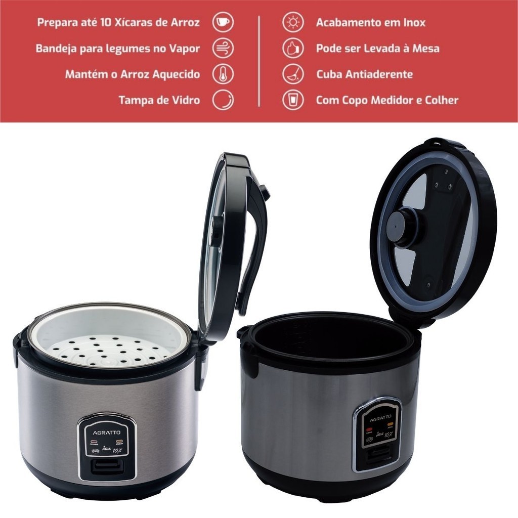 Panela Elétrica De Arroz e Legumes Visor Vidro 220V Agratto