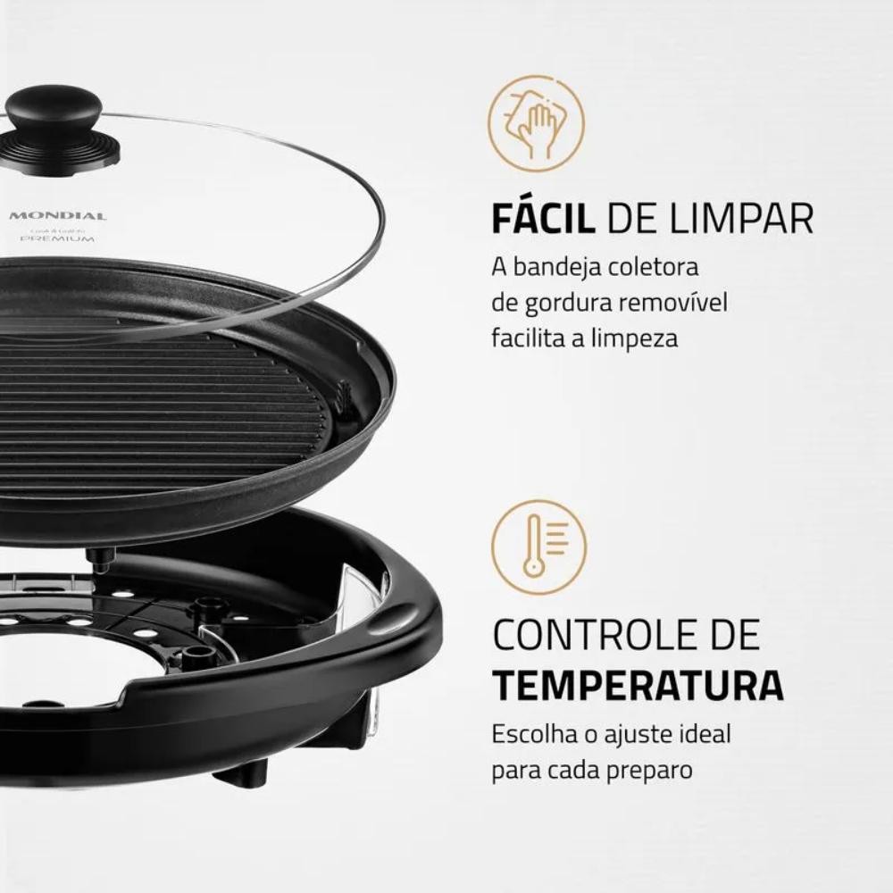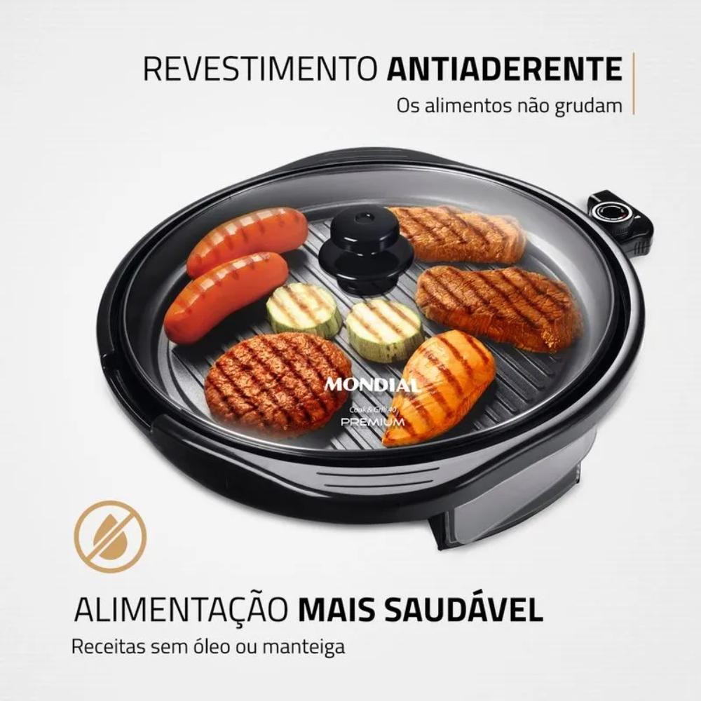 Panela Elétrica Mondial Cook e Grill 40 Redondo Preto 1270W 127V - G-03
