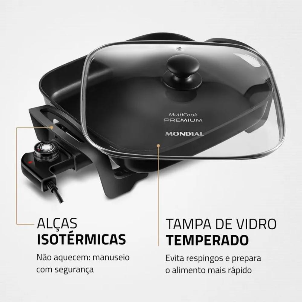 Panela Elétrica Mondial Multicook Premium 1200W 220V Preto - PE-49-RC