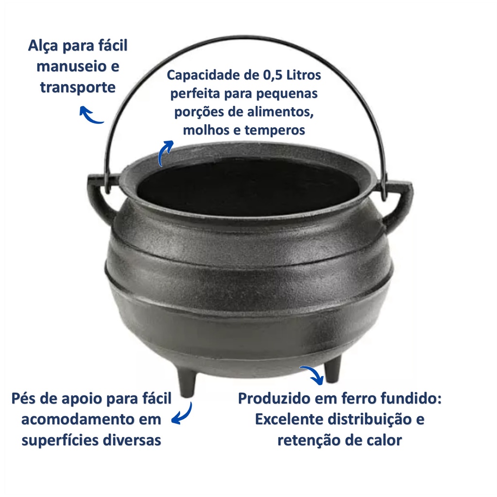 Panela Extramil Caldeirão Pequeno 0,5 Litros Em Ferro Fundido Com Alça