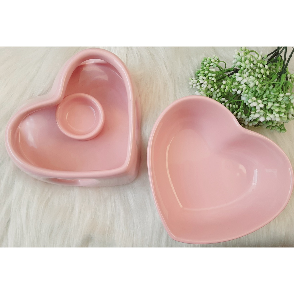 Panela Fondue Cerâmica Coração Rosa 500ml