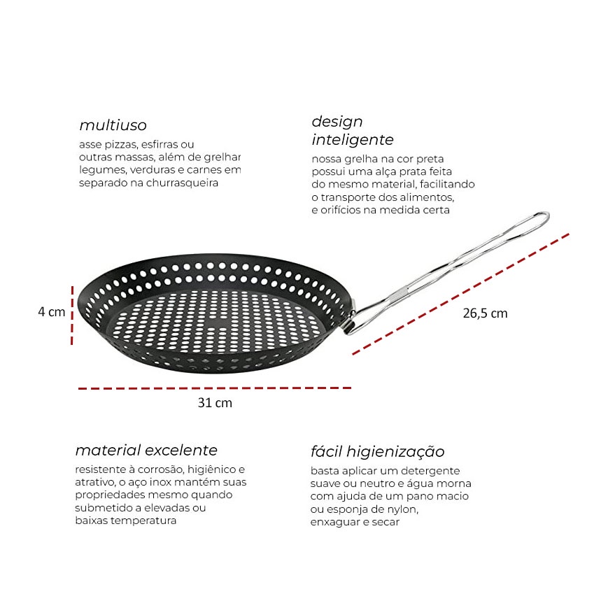 Panela Grelha Churrasqueira Grill Aço Inox Preto 31cm