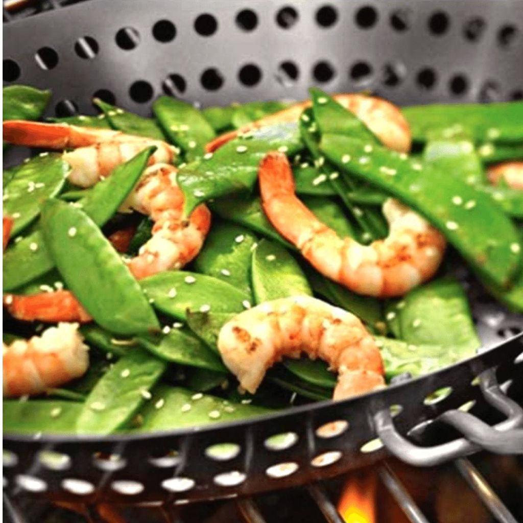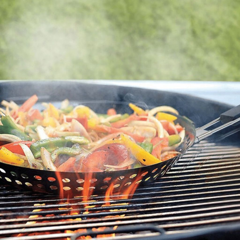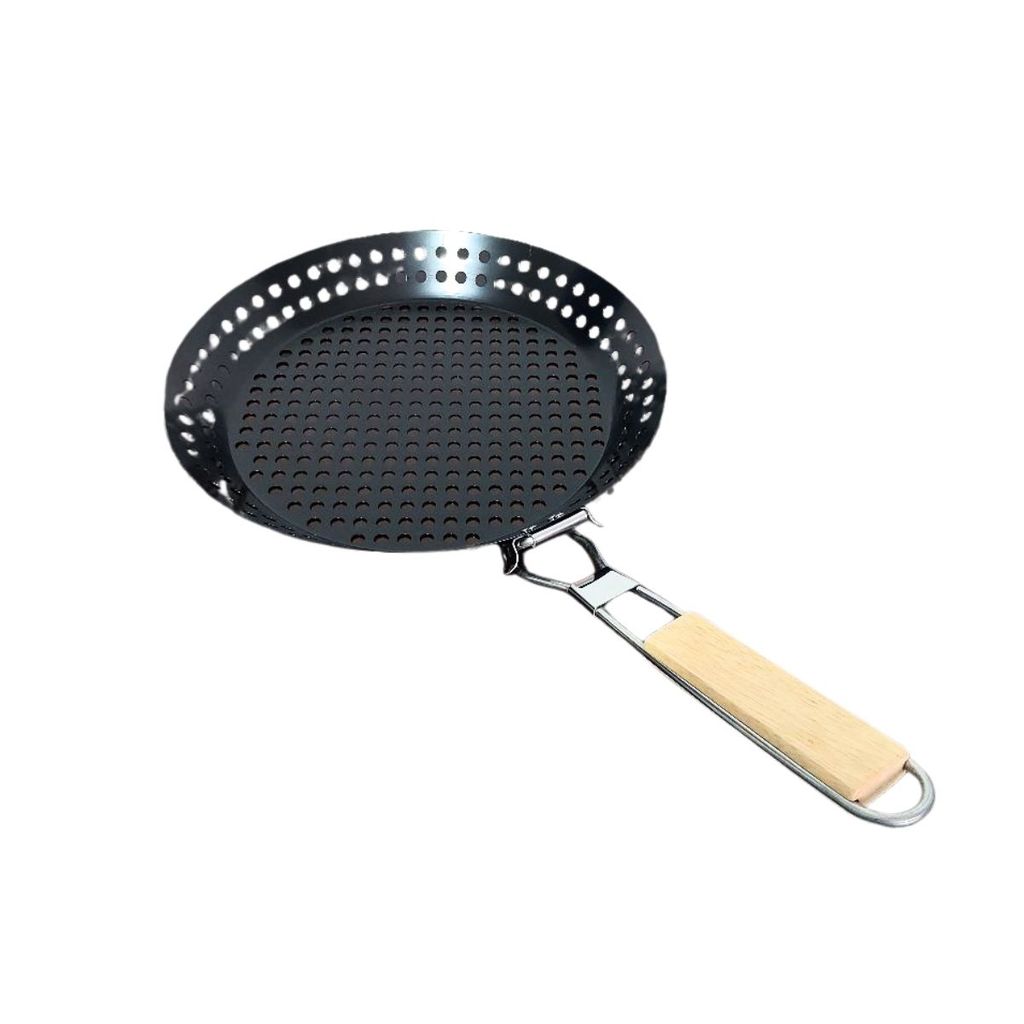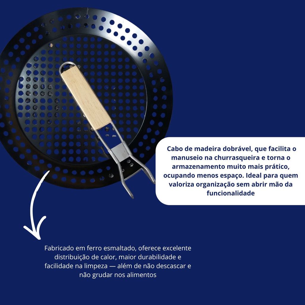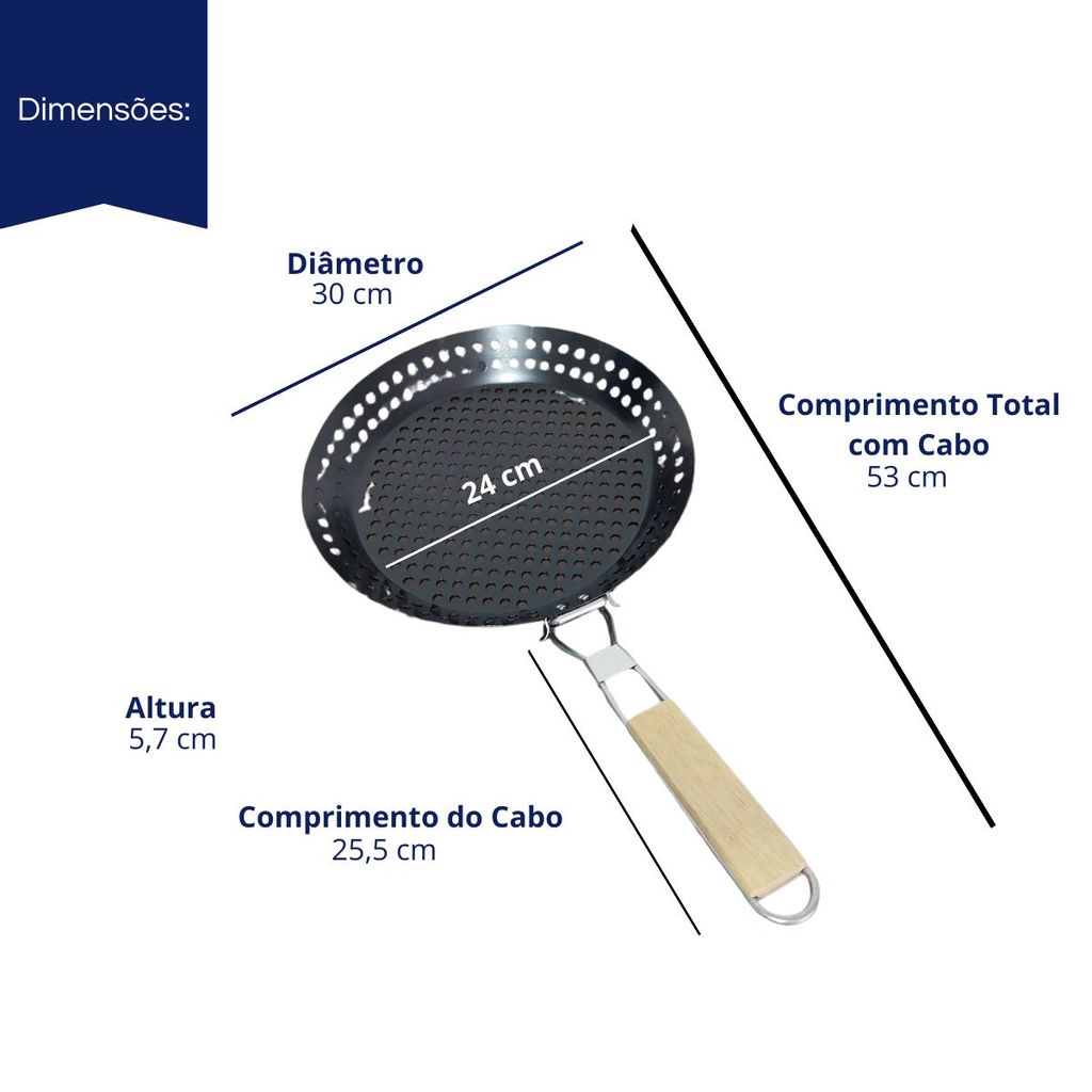 Panela assadeira 30cm Grill Churrasqueira Cabo Madeira Ideal Para Assar Carnes Vegetais ou Legumes