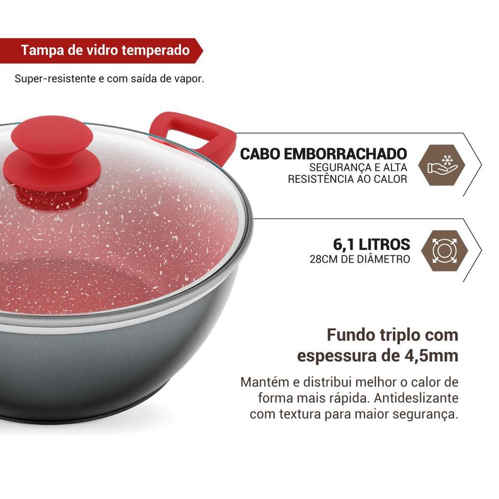 Panela Philco PPH280ACR Redstone com Tampa de Vidro 6,1L