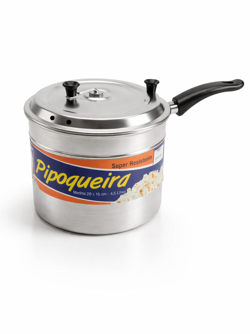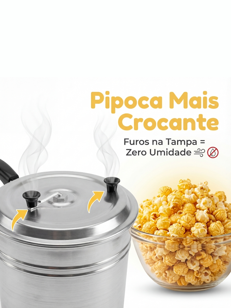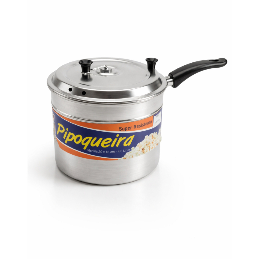 Panela Pipoqueira 4,5 Litros Alumínio Polido Tradicional Cozinha Profissional Reforçada Com Cabo