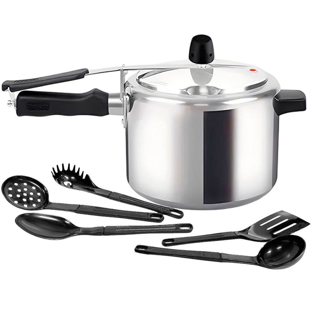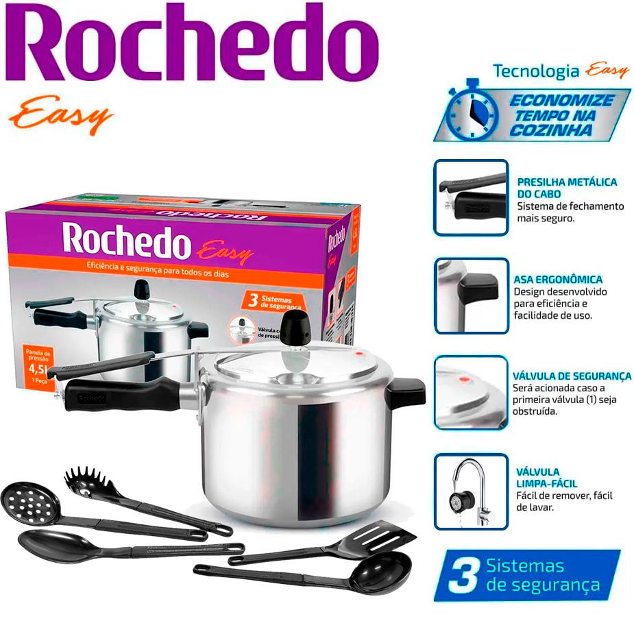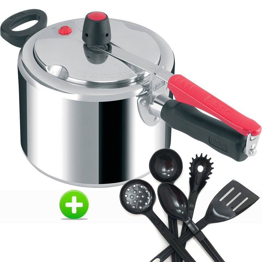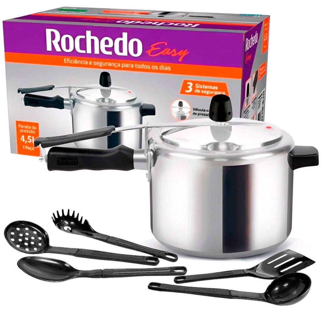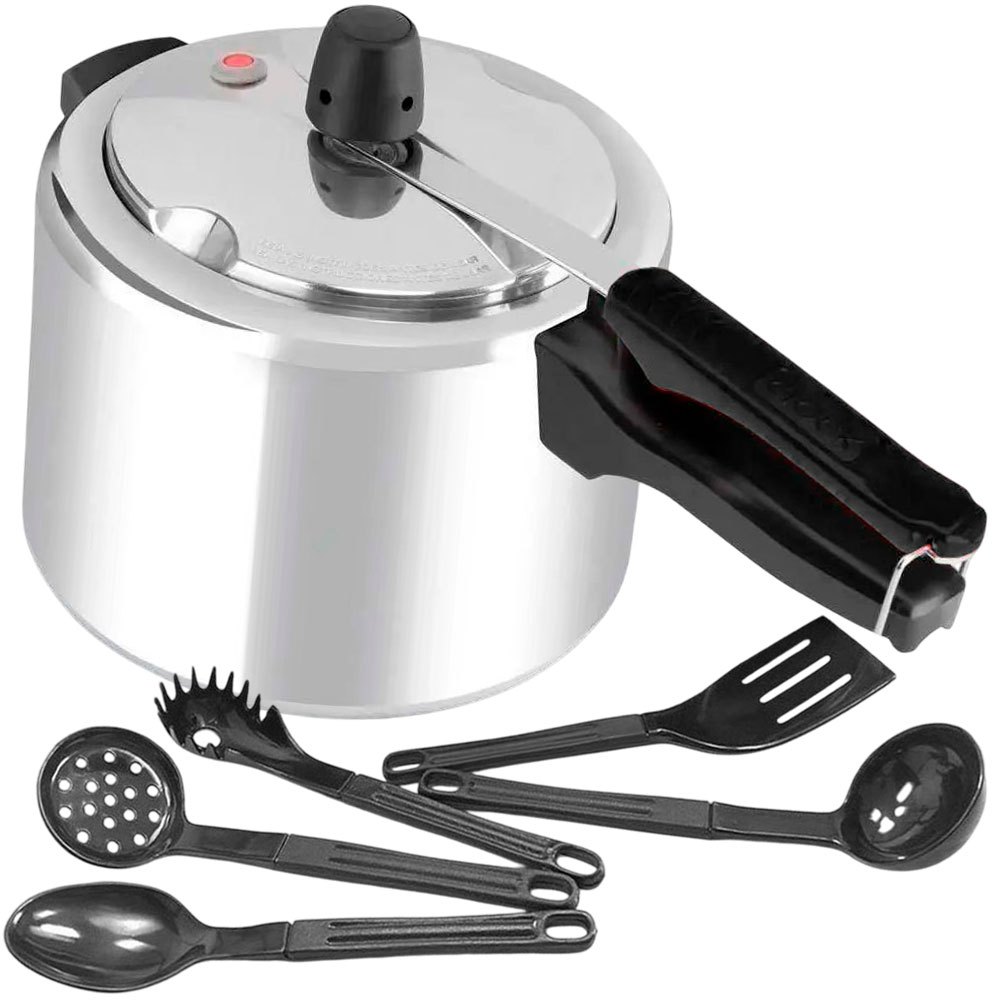 Panela Pressão 4,5 Litros Polida Rochedo Clock com Conjunto de Utensílios 5 Peças Preto