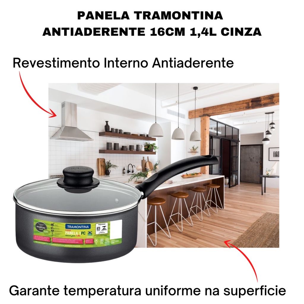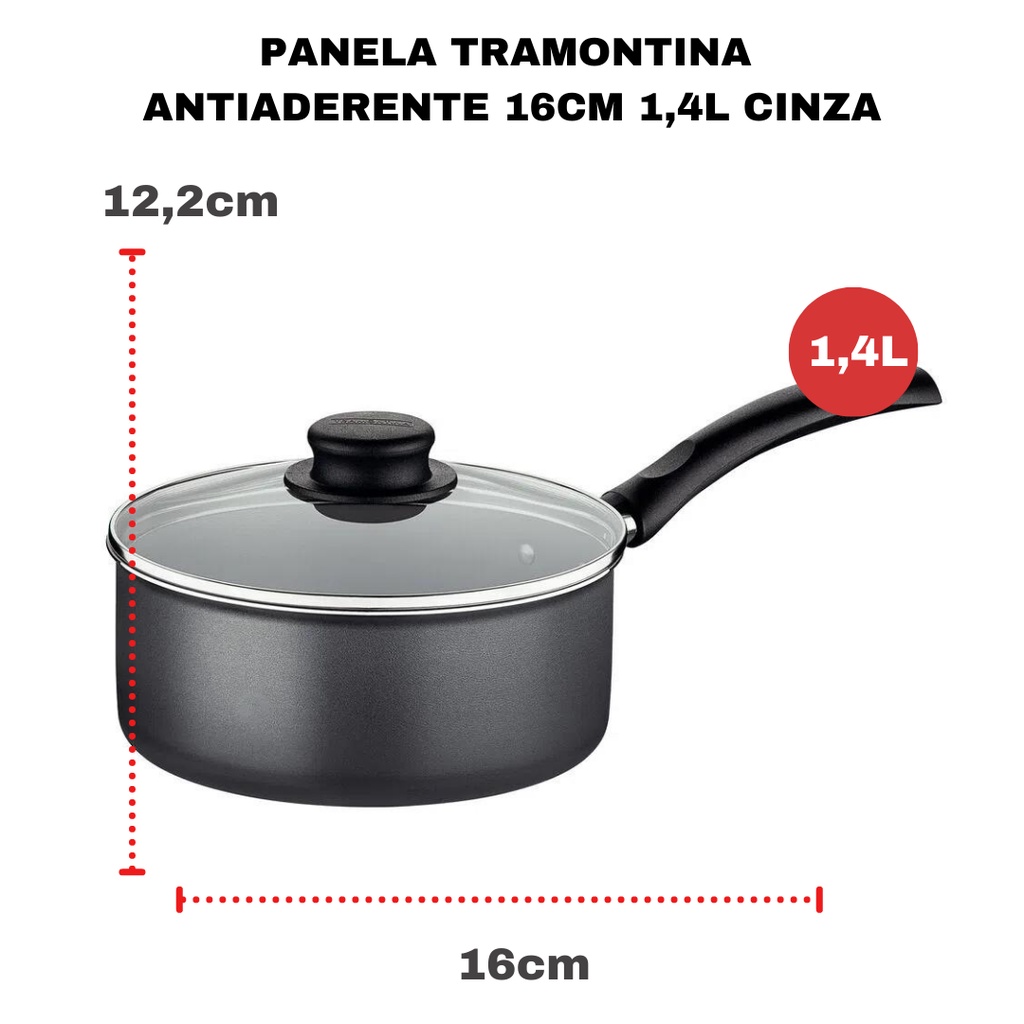 Panela Tramontina Avulsa Antiaderente Aluminio 16cm 1,4 Litros Turim Cinza Não Gruda Promoção