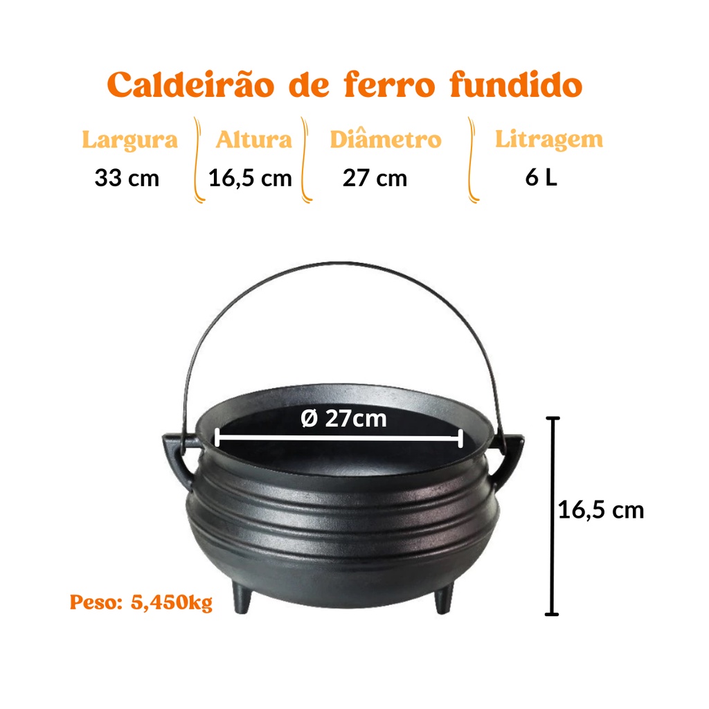 Panela Tripé Caldeirão 6l De Ferro Fundido Sem Tampa