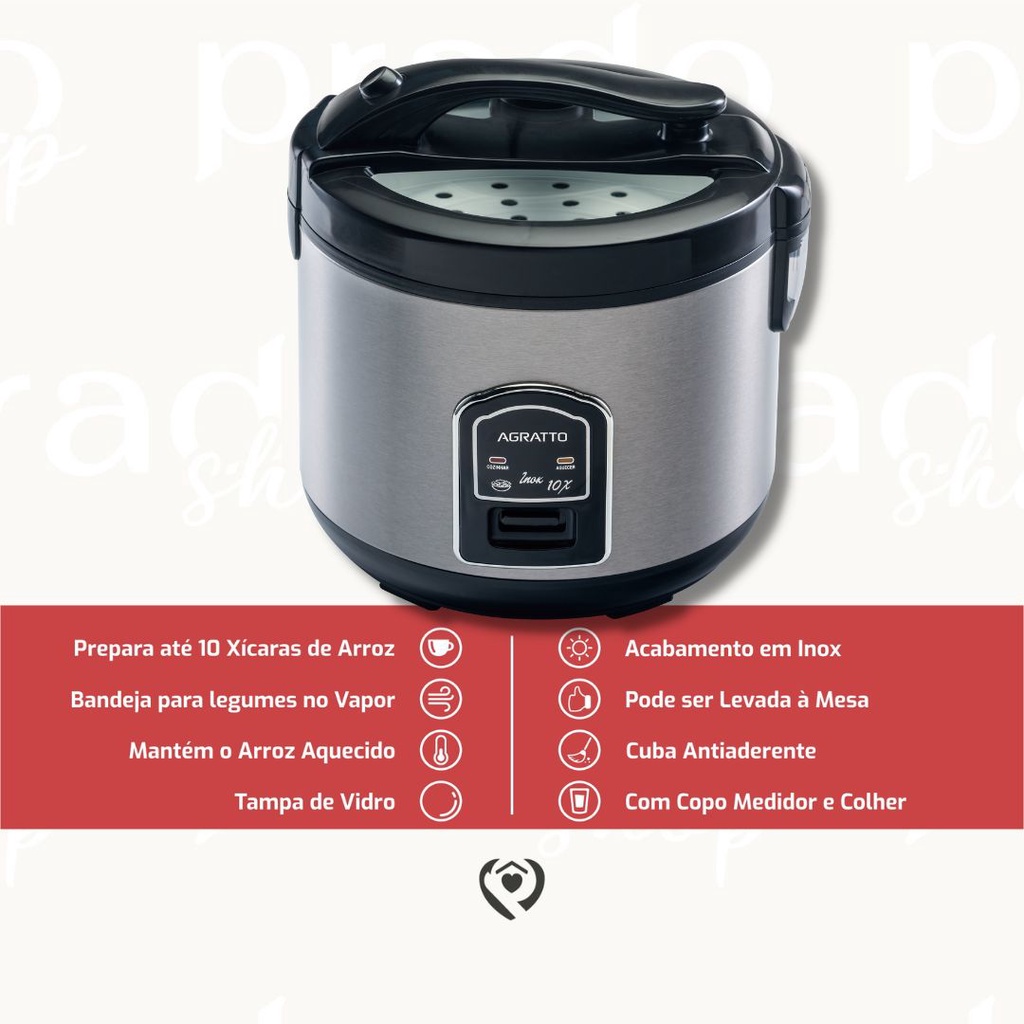 Panela de Arroz 10X Inox Legumes No Vapor Agratto