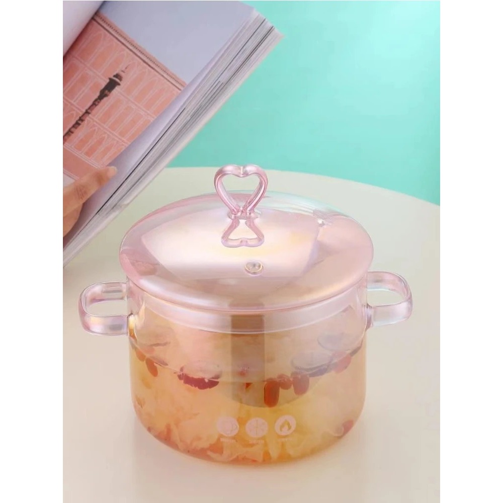 Panela de Arroz Caçarola de Vidro Borossilicato Rosa Holografica Coração Vai ao Fogo Moderna