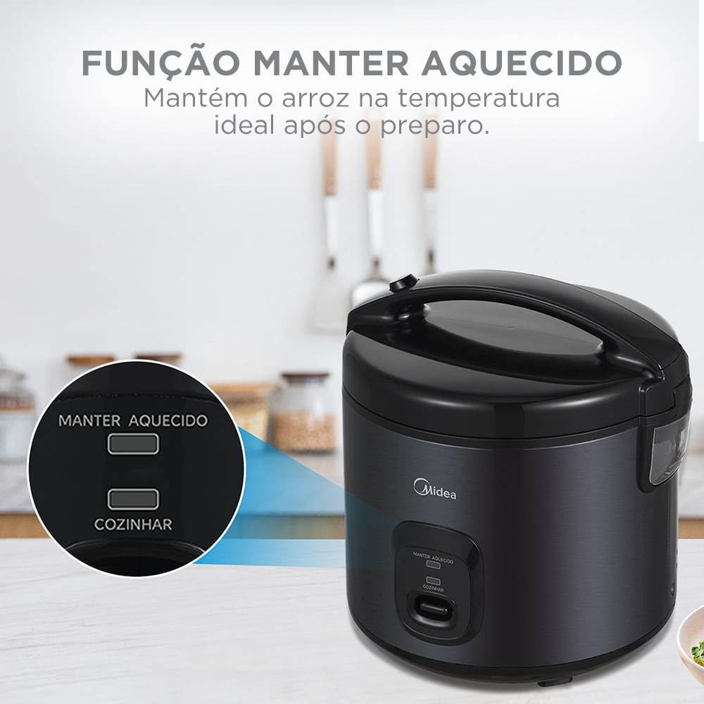 Panela de Arroz Elétrica Midea 3L Preta Inox