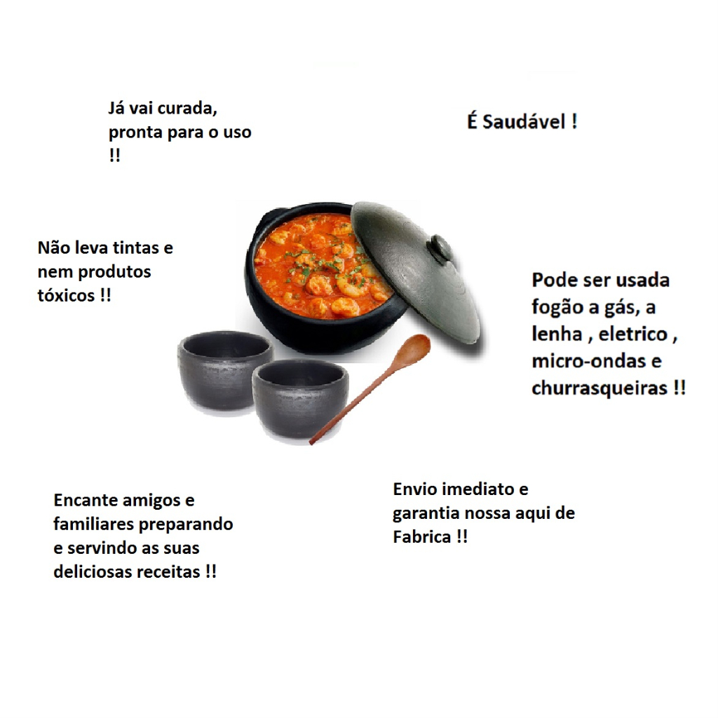 Panela de Barro Preto Capixaba 5 Litros + 2 cumbucas de 500ml cada