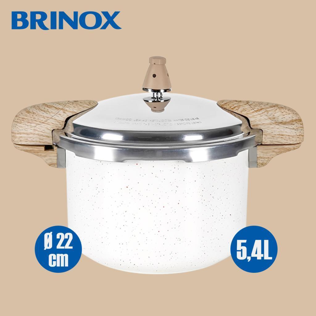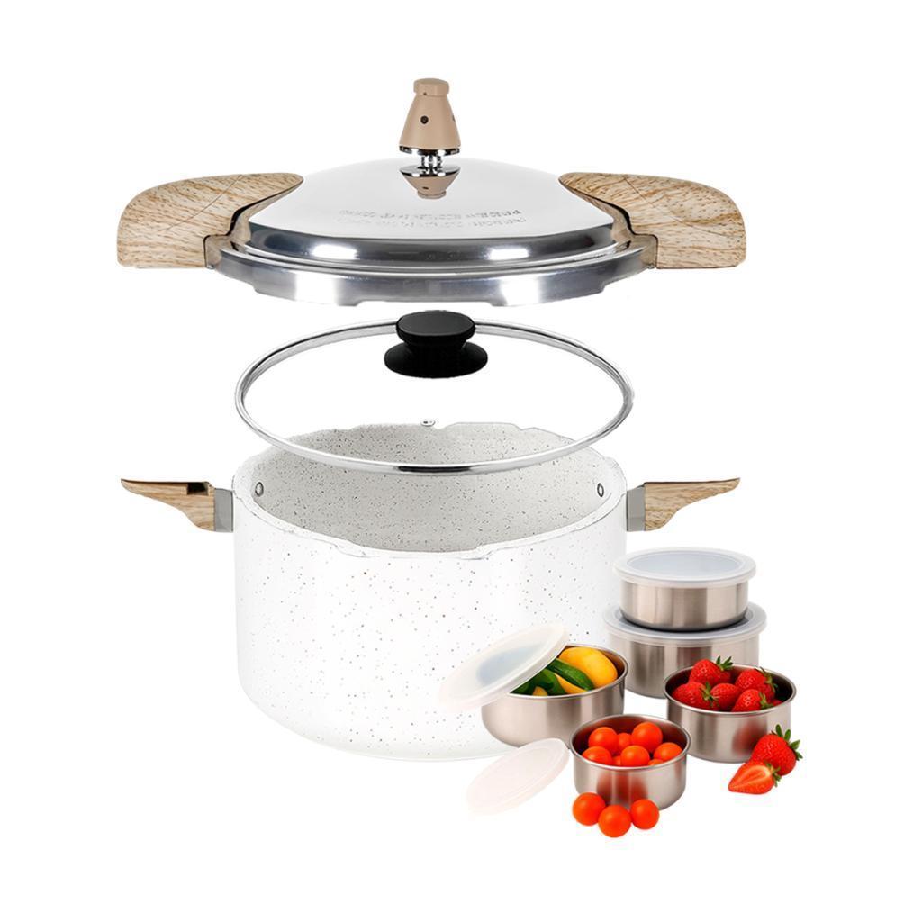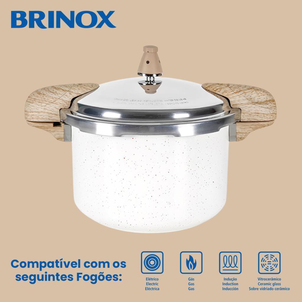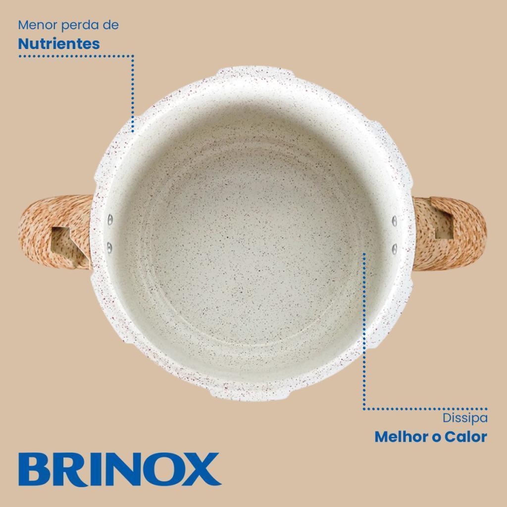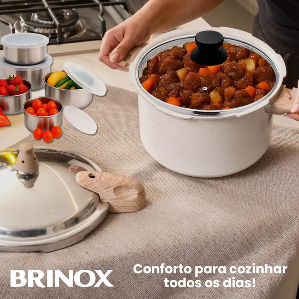 Panela de Pressão 2 em 1 Indução 5,4 Lts Brinox Ceramic Life Vanilla com Jogo de Potes de Inox 5 Peças