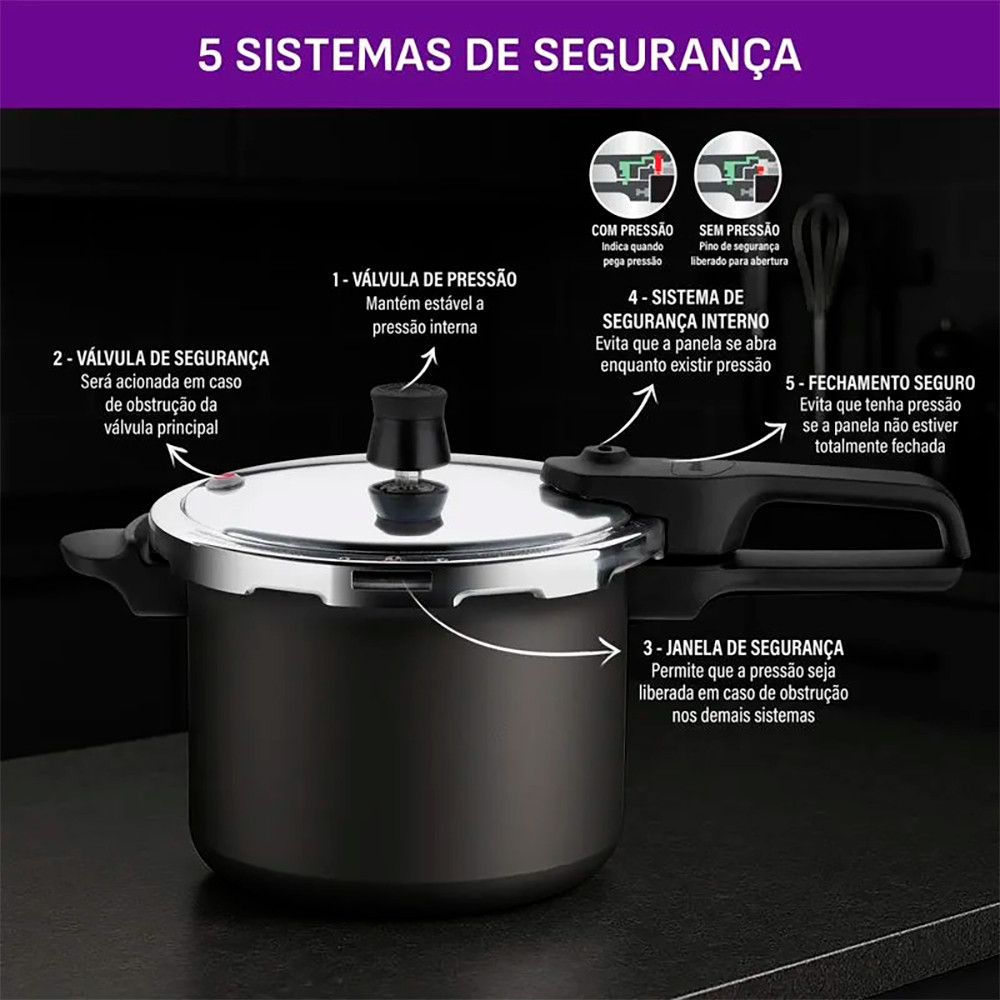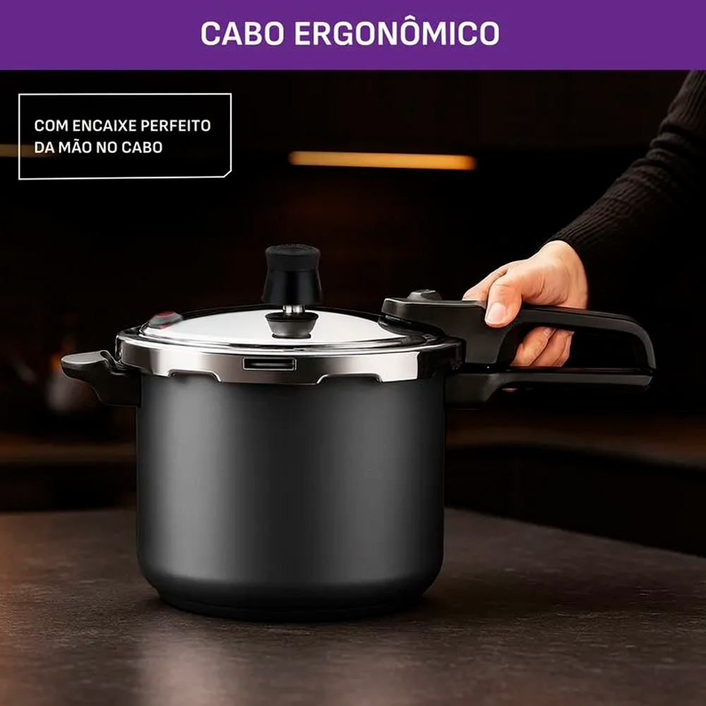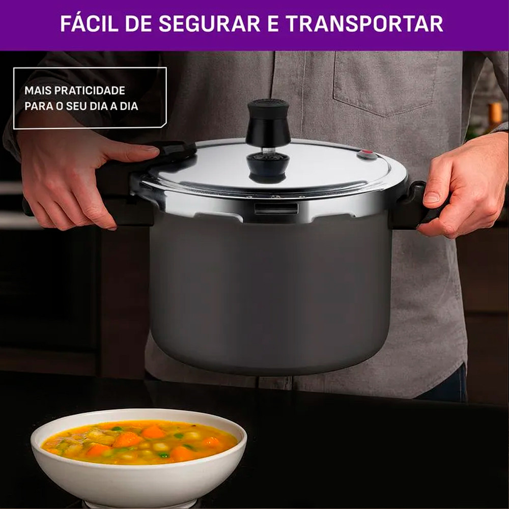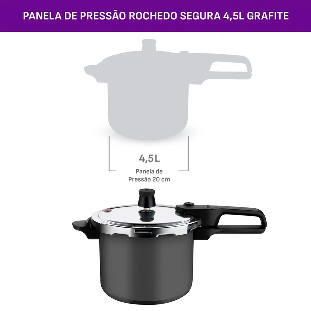 Panela de Pressão 4,5 Litros Rochedo Segura Fechamento Externo Antiaderente Grafite