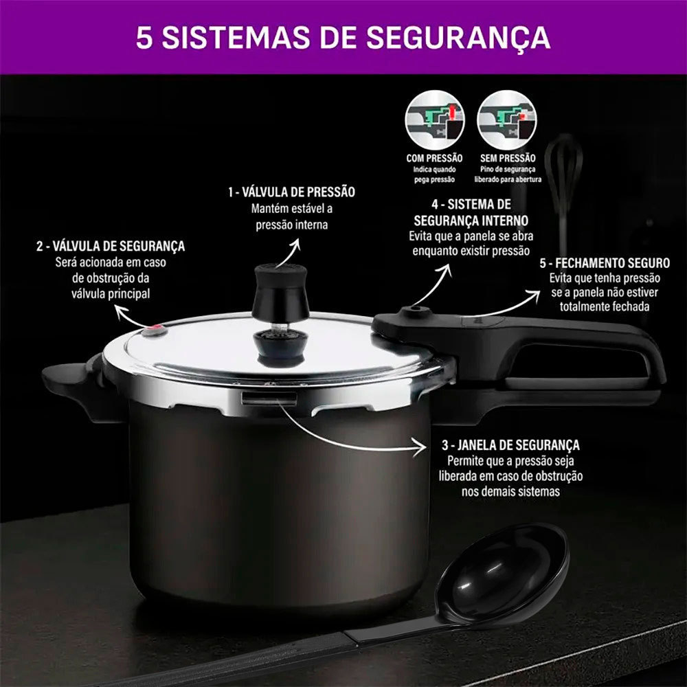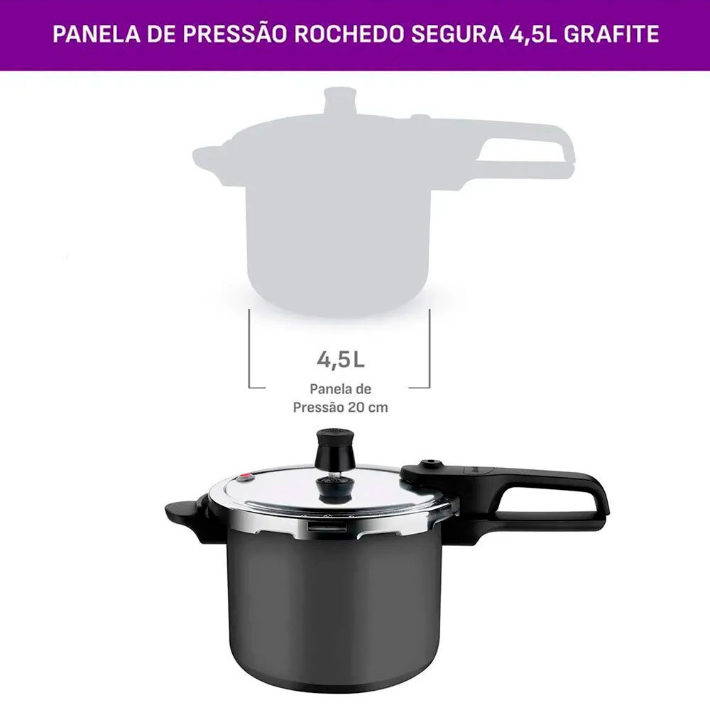 Panela de Pressão 4,5L Rochedo Segura Grafite Revestimento Antiaderente Com Concha de Feijão