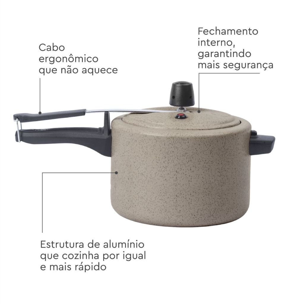 Panela de Pressão 7,5 L Revestimento Cerâmico Ceramic Life Vapt Brinox - Cinza e Vanilla