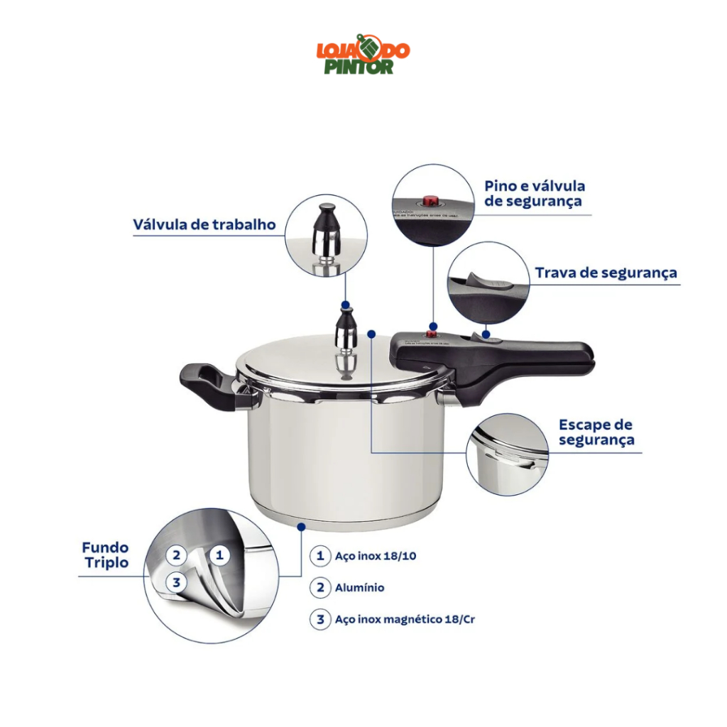 Panela de Pressão Inox Tramontina Brava 4,5L Fundo Triplo Indução
