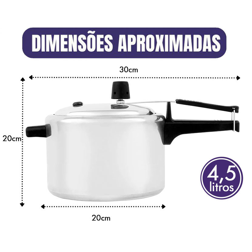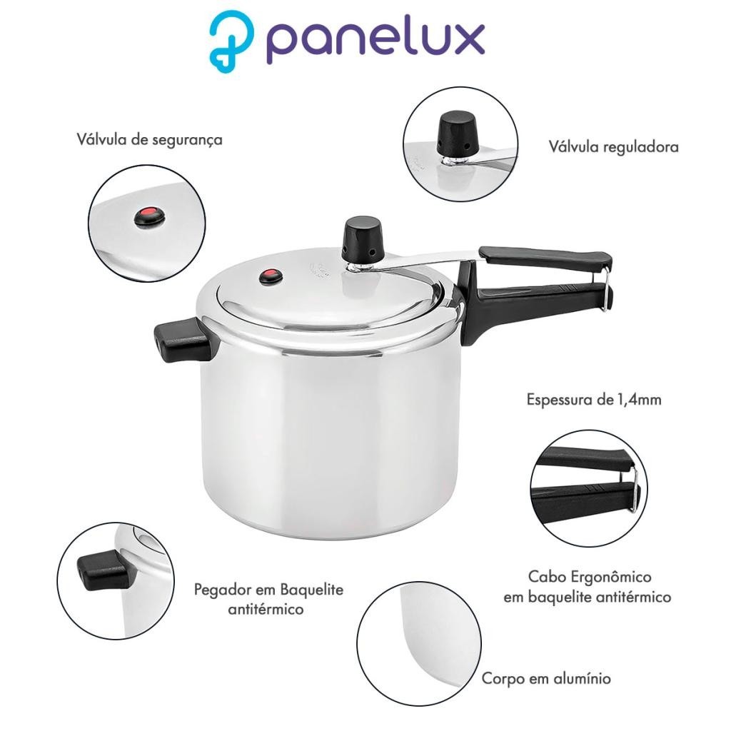 Panela de Pressão Panelux Classic 4,5 Litros em Alumínio Polido e Concha em Nylon