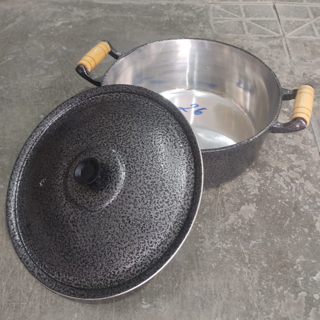 Panela de alumínio nº26 preta Caçarola craqueada reta 4,65l Panela para arroz