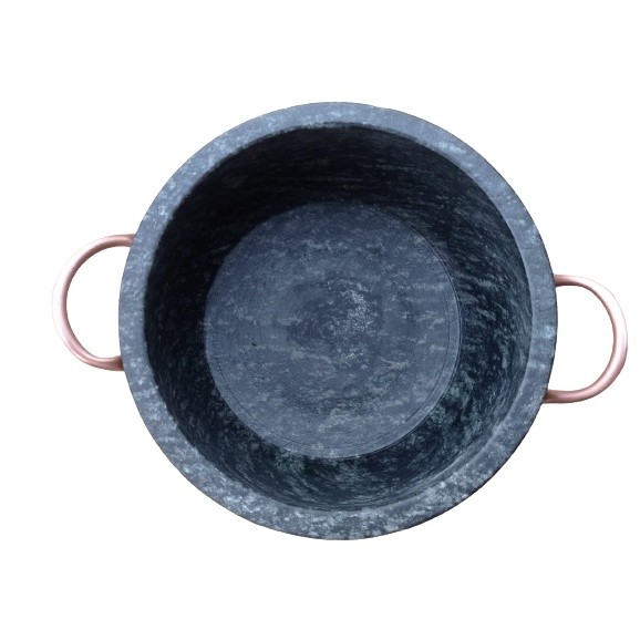 Panela em pedra sabão alça de cobre número 7 curada
