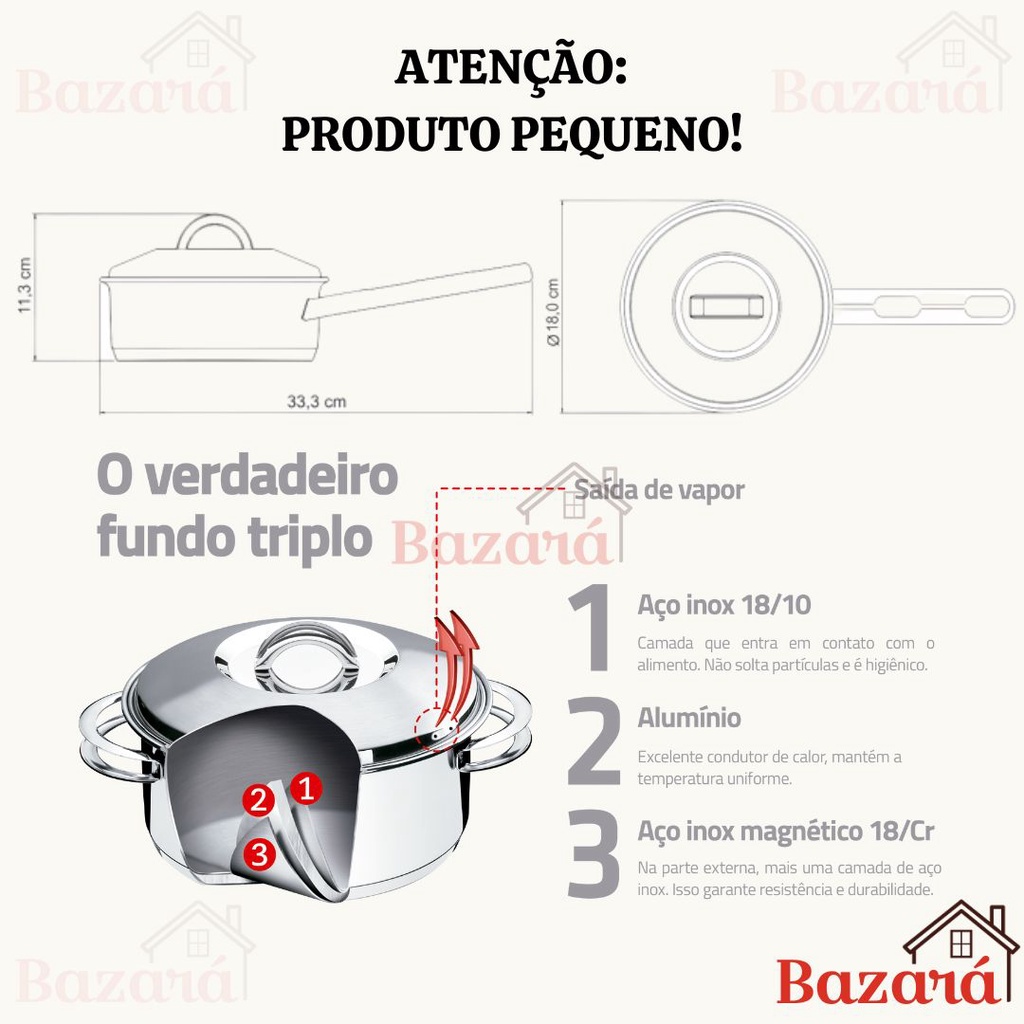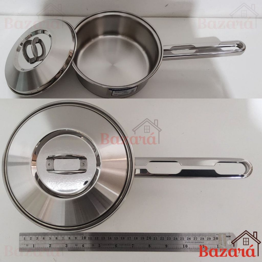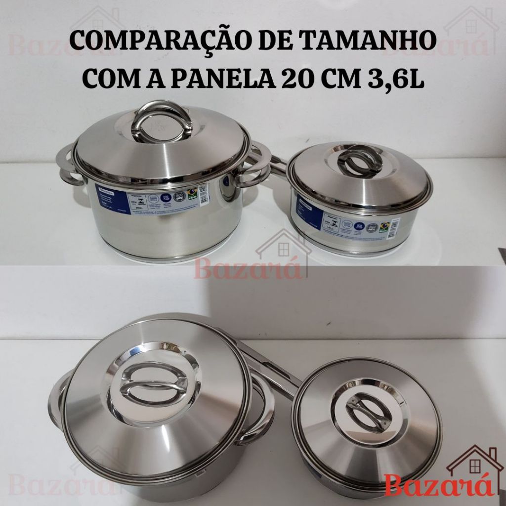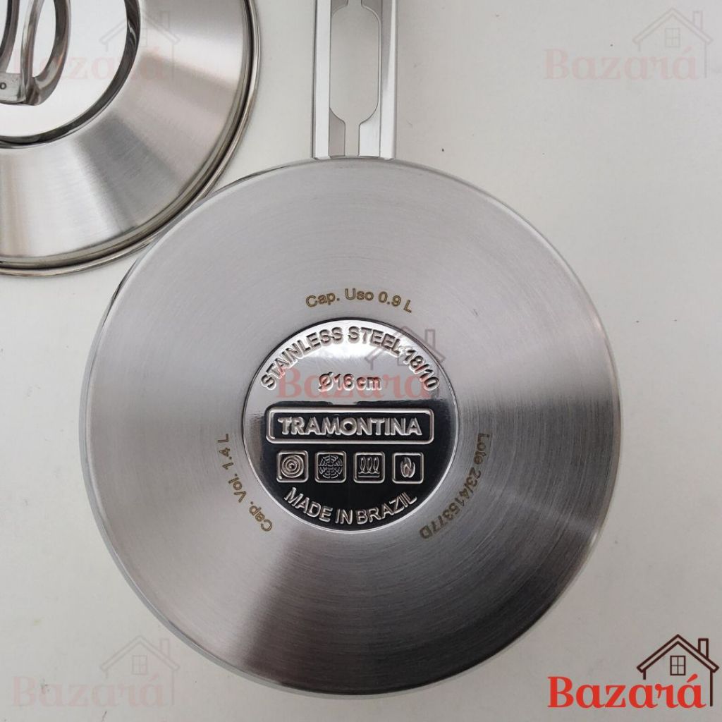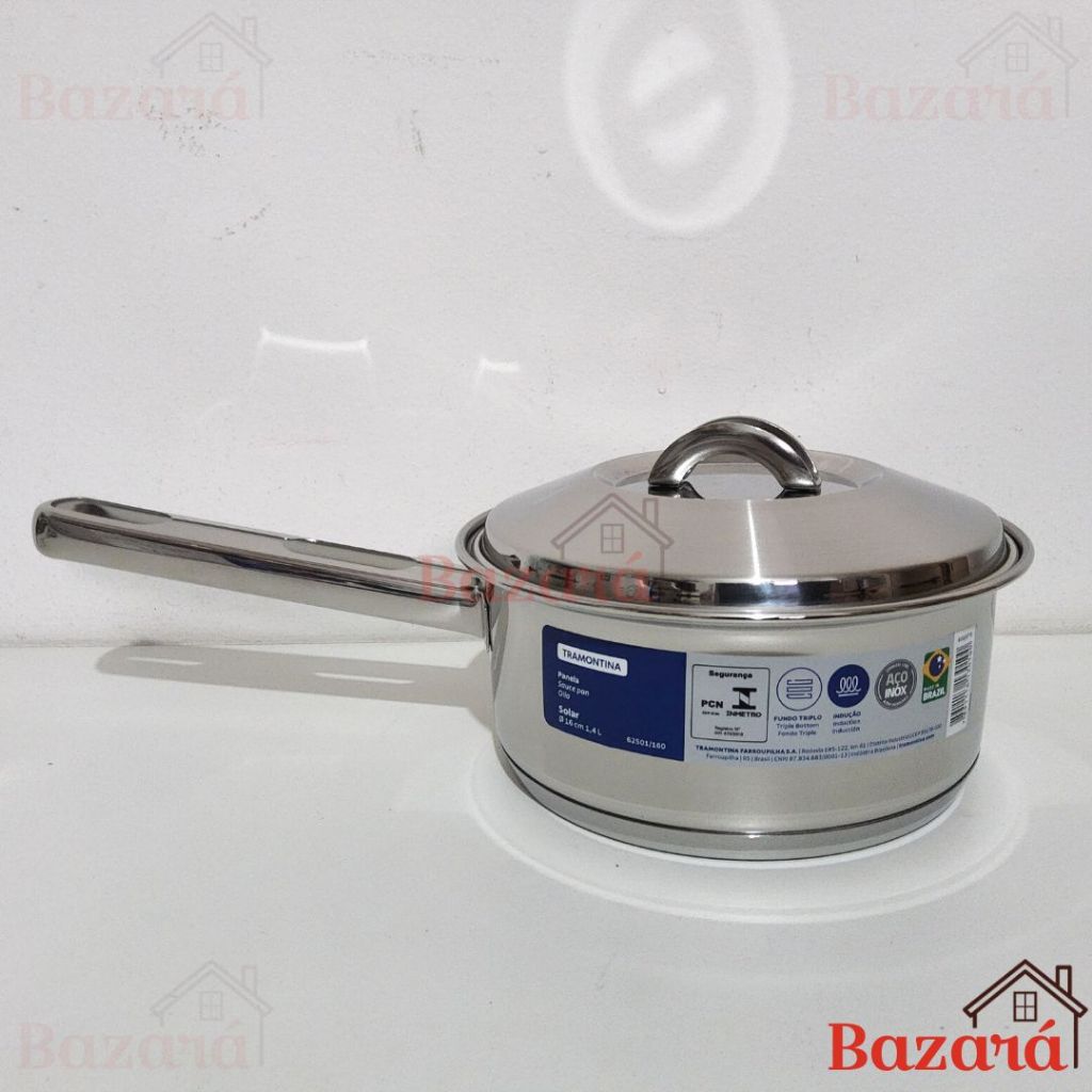 Panela inox fundo triplo 16 cm/1,4L Solar Tramontina com tampa e cabo