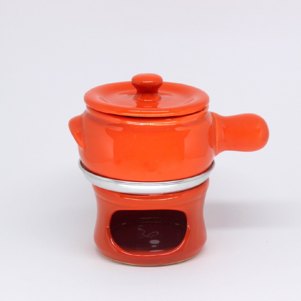 Panelinha de Fondue com Rechaud de Ceramica Panela Porcelana Fundi Colorida