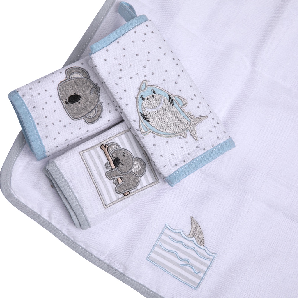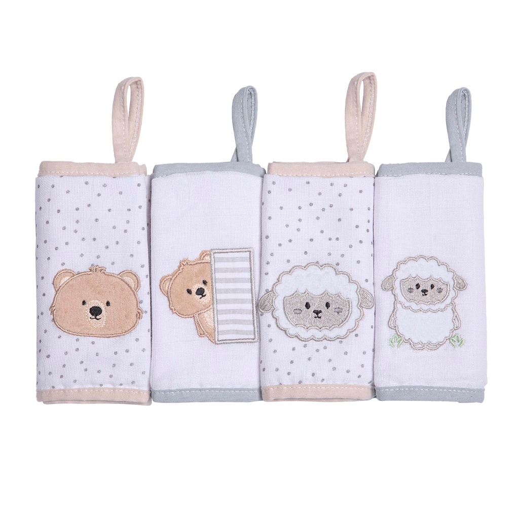 Paninho de Boca Soft Papi Friends Forro em malha com Prendedor 38x38cm Kit Com 4 Unidades Bordado