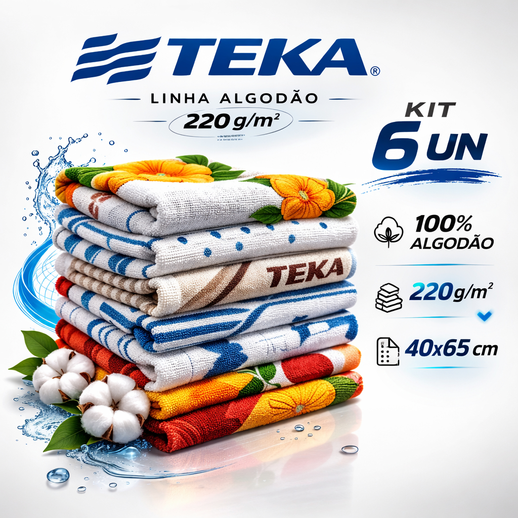Kit 6 Pano Prato Teka Primore 40x65cm 100% Algodao Atoalhado Estampas Sortidas Alta Absorcao Cozinha Hotel Restaurante