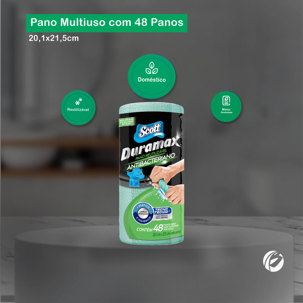 Pano Multiuso Antibacteriano 20,1x21,5 com 48 unidades Duramax Scott