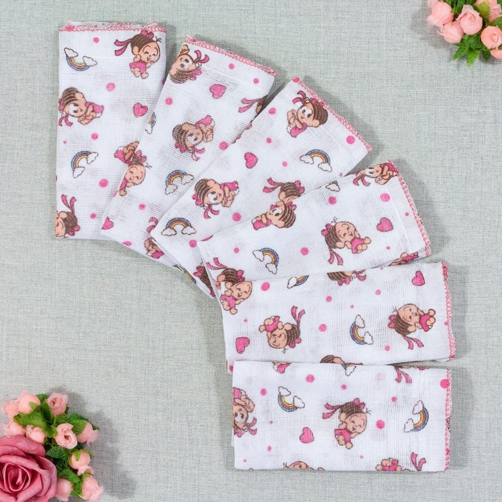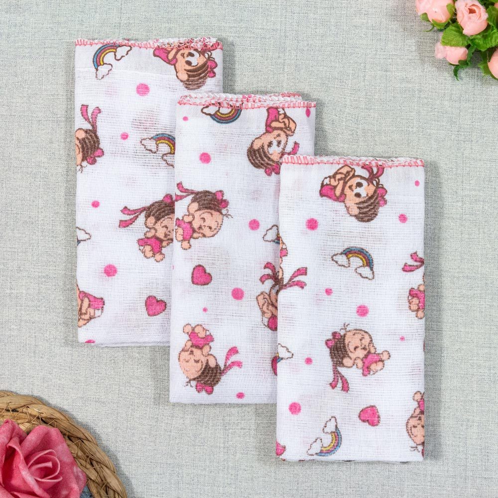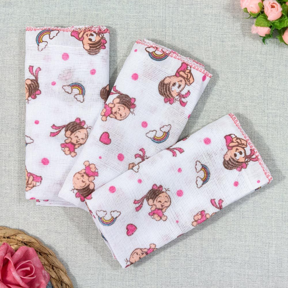 Pano de Boca Kit Com 6 Peças para Bebê Turma da Monica Rosa
