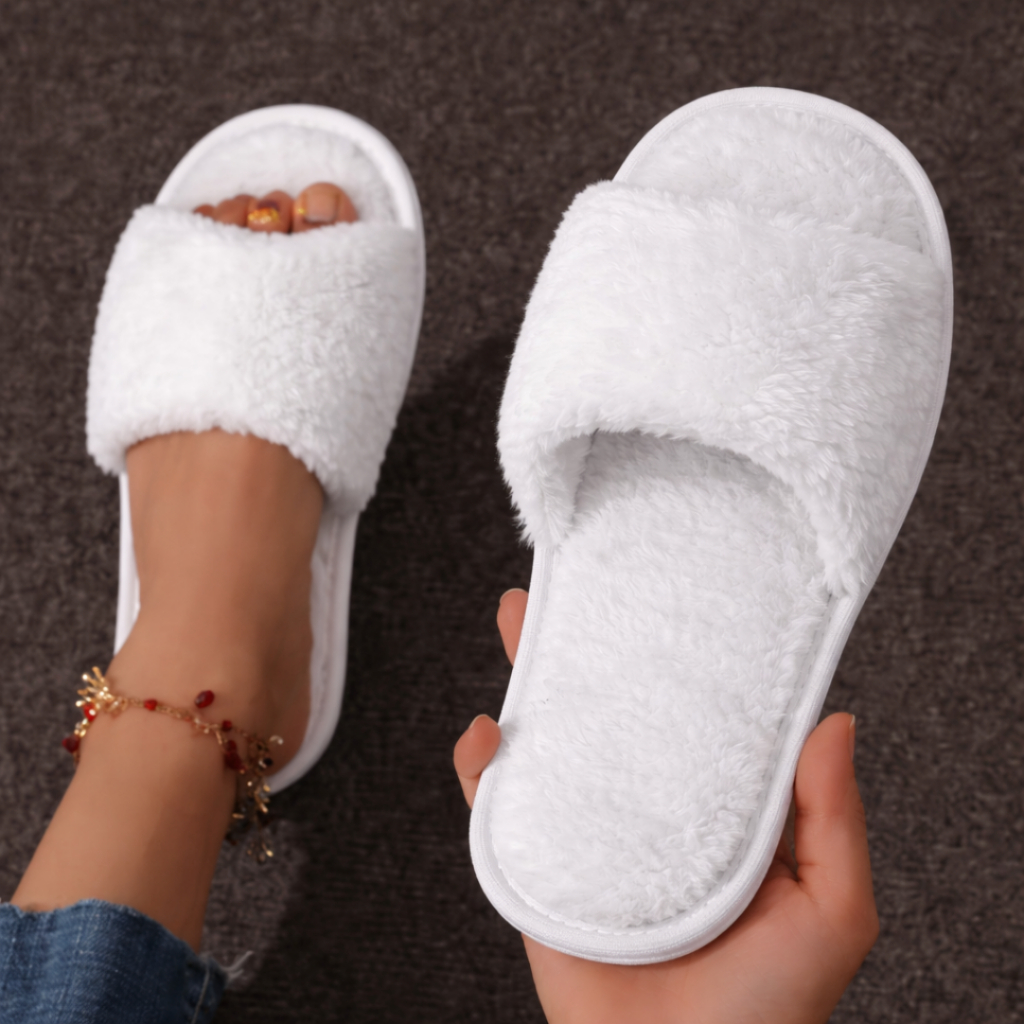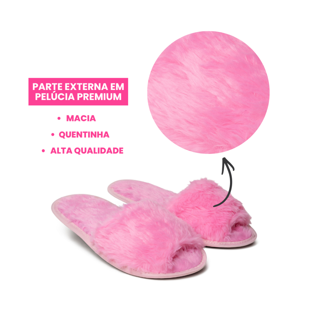 Pantufa feminina Aberta Em Pelúcia de Alta Qualidade