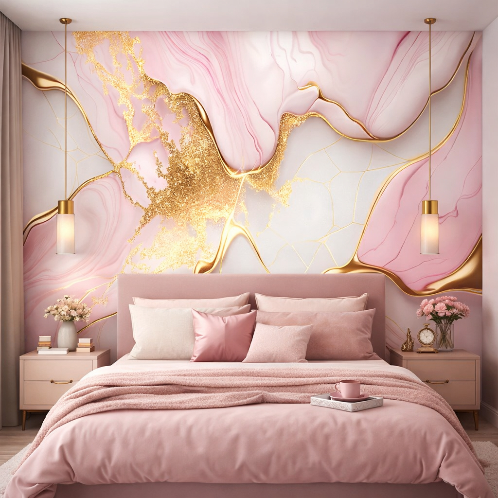 Papel De Parede Mármore Rose Lavável Autocolante Painel Completo
