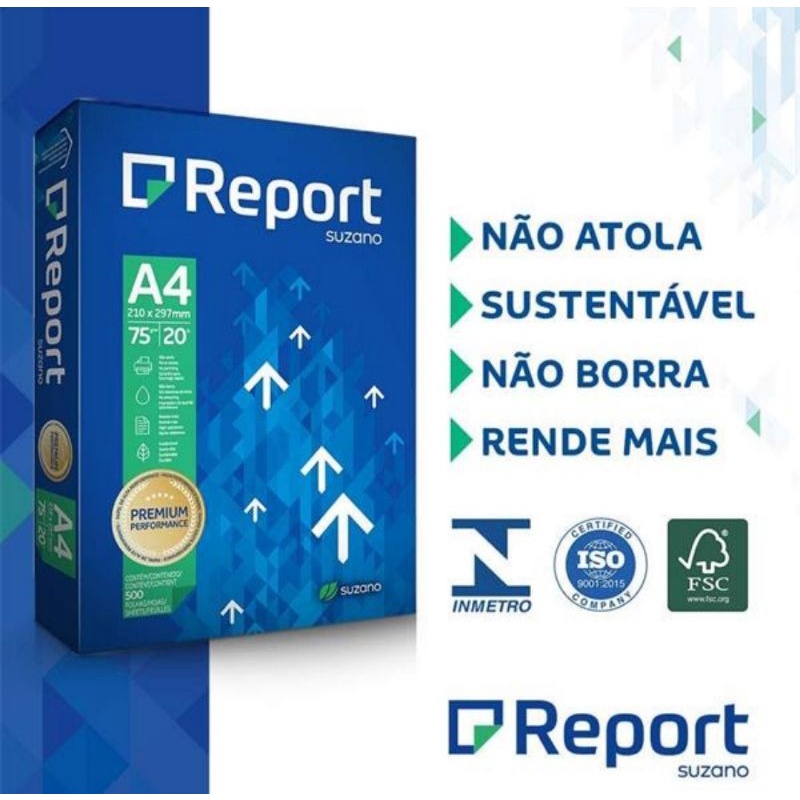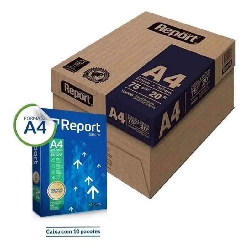 Papel Sulfite A4 Suzano Report Premium, 5 Resmas 500 Folhas, Total 2500, Exelente para Impressoara