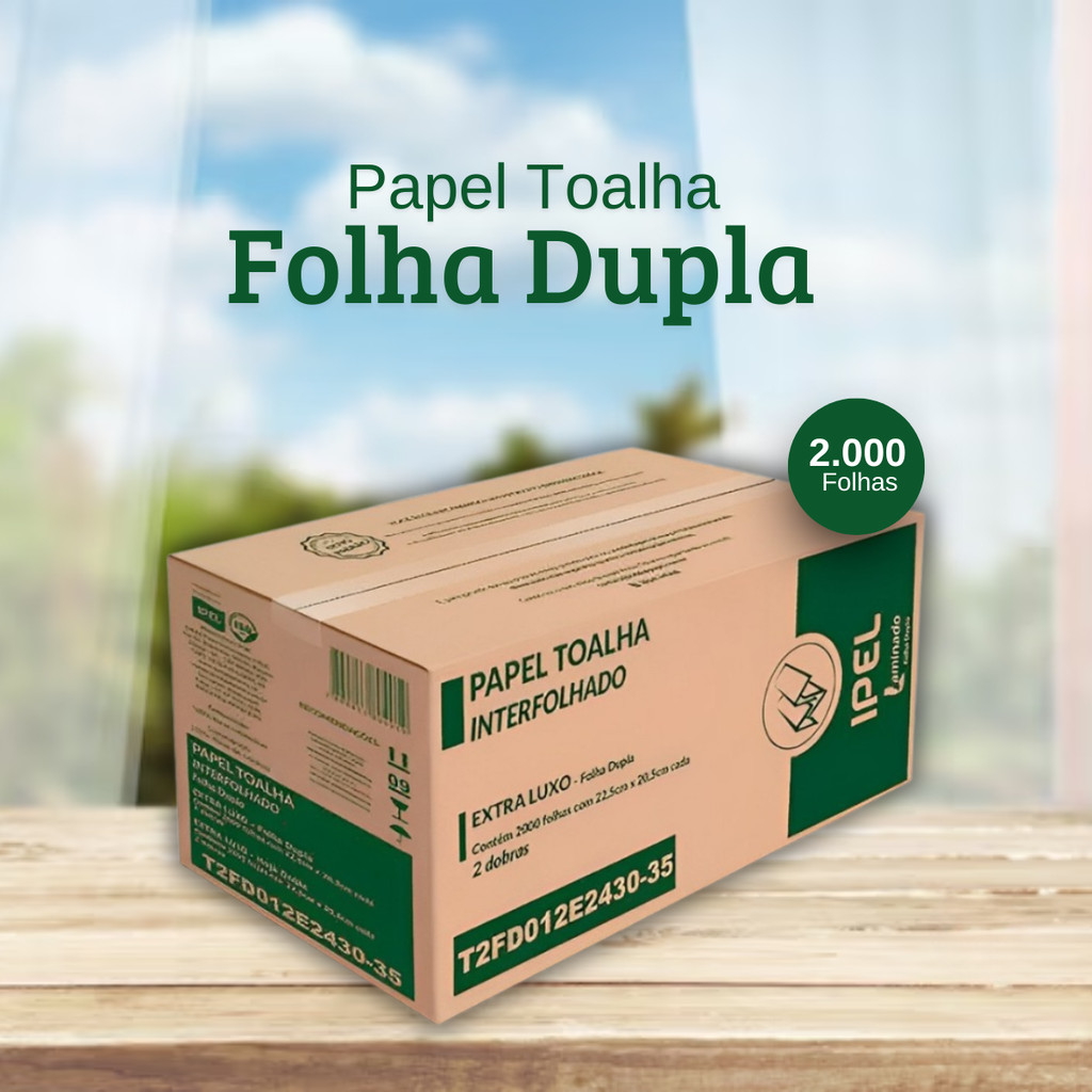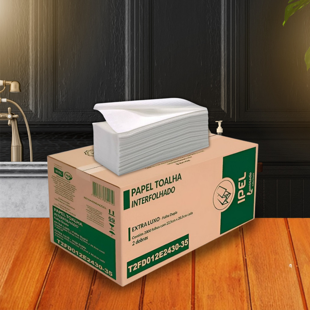 Papel Toalha Interfolha 2 Dobras Folha Dupla 2.000 folhas Laminado Ipel