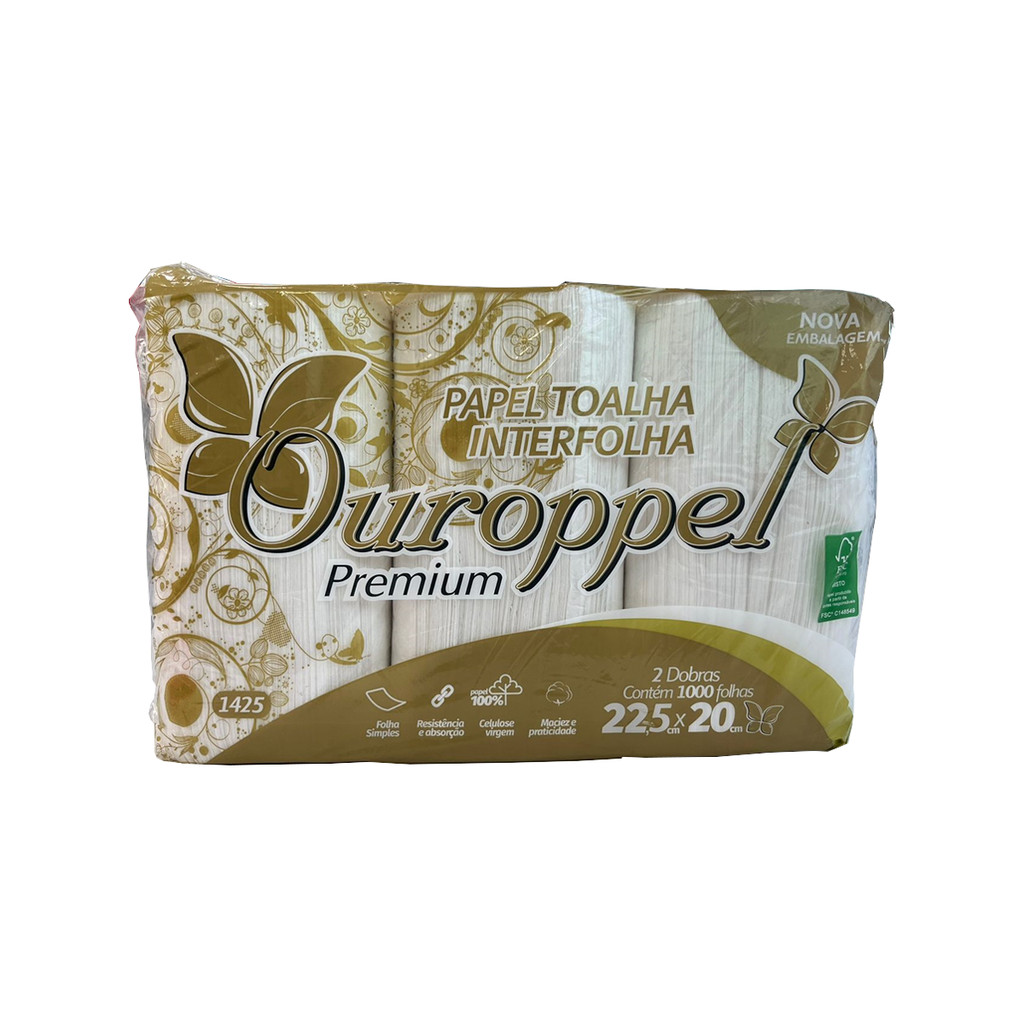 Papel Toalha Interfolha 2 Dobras Folha Simples Premium 1.000 Folhas 22,5x20 Ouroppel