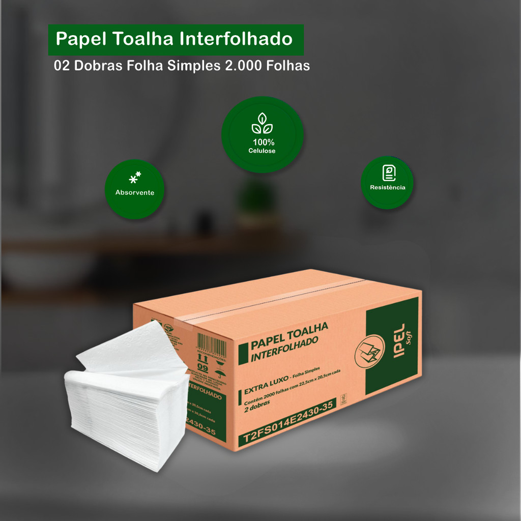 Papel Toalha Interfolha 2 Dobras Folha Simples Soft 2.000 folhas Ipel