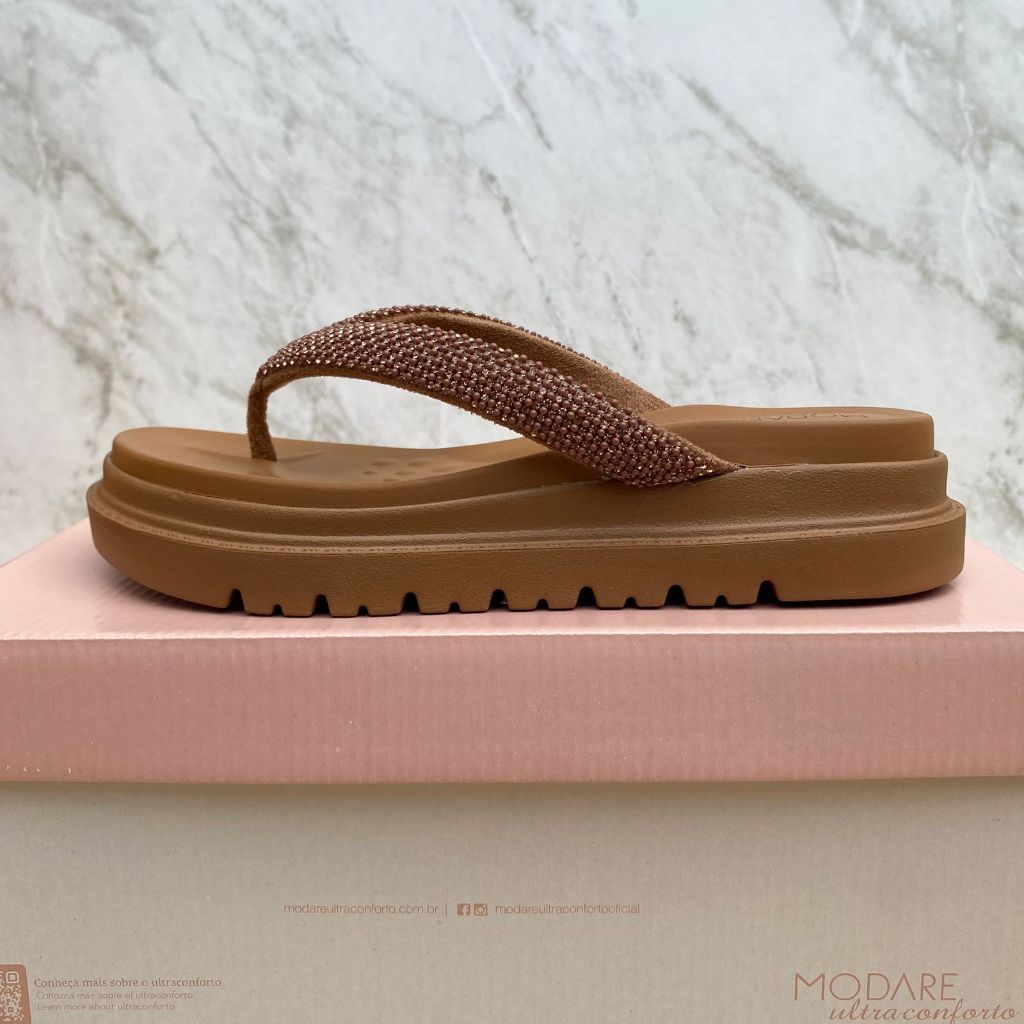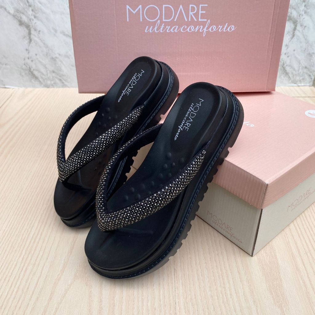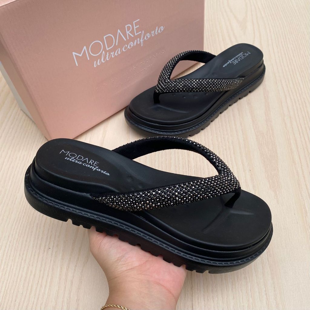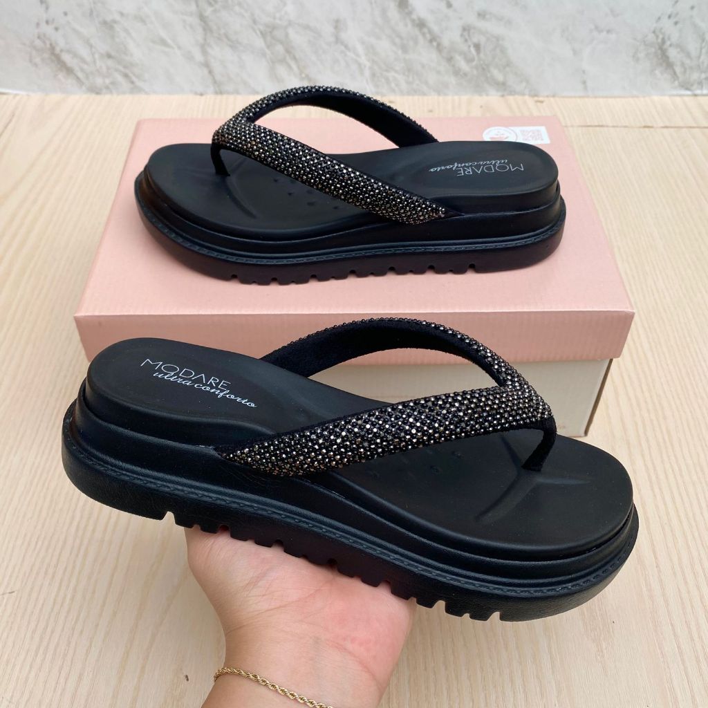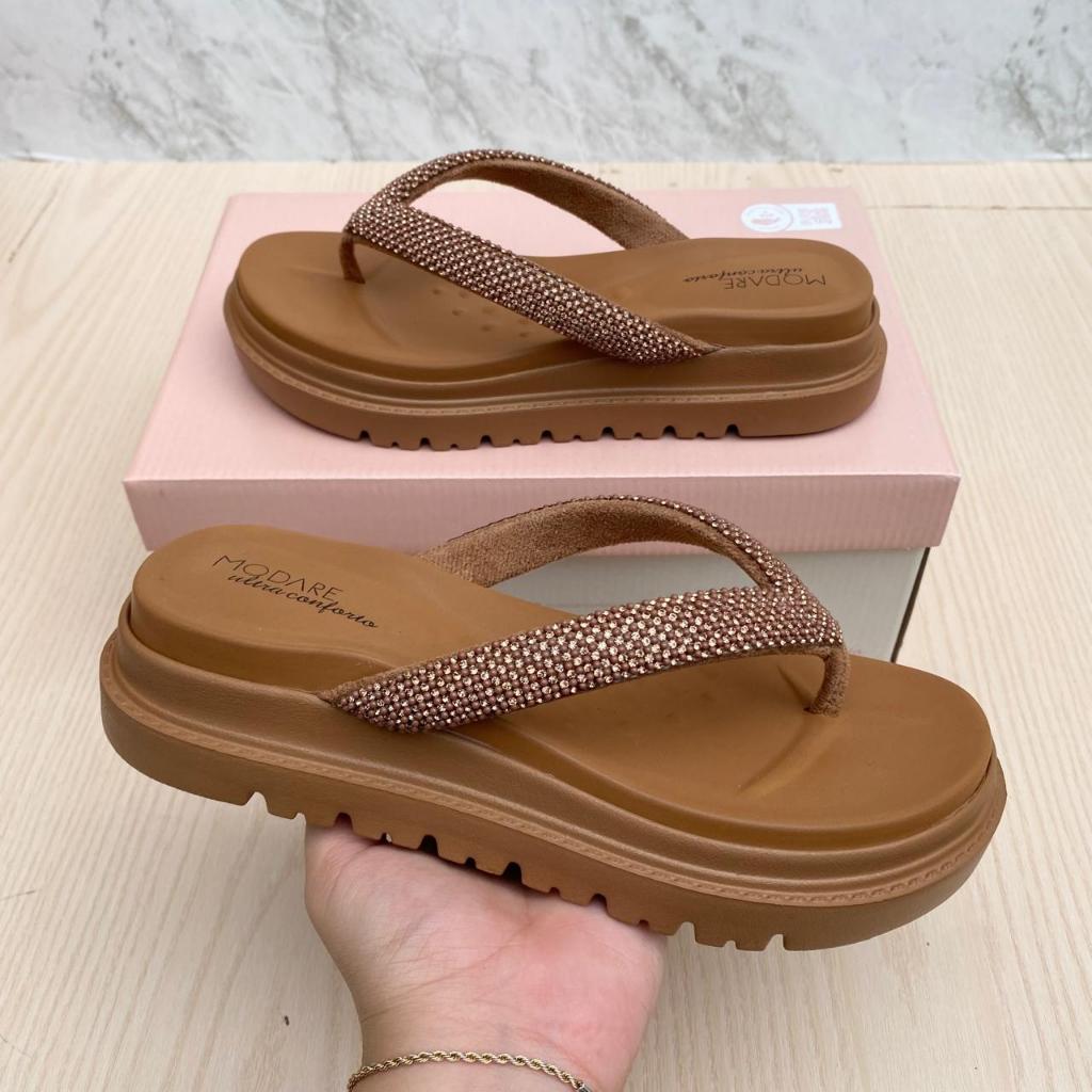 Papete Sandália Feminina Modare Plataforma Tratorada Confortável Leve Moda Verão Brilho Strass