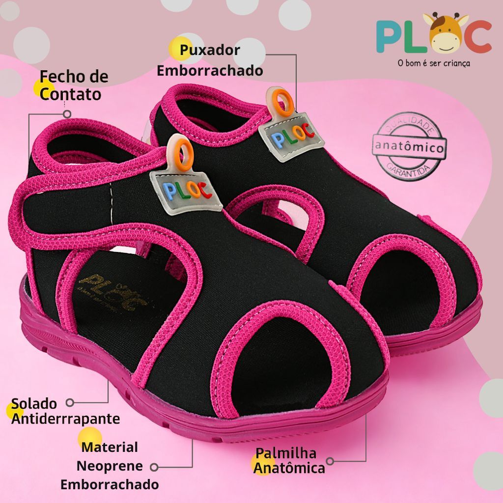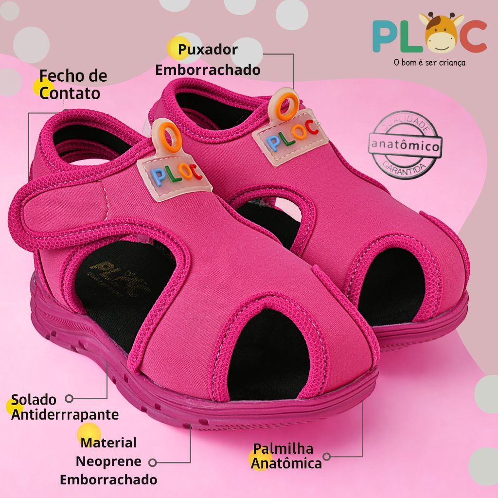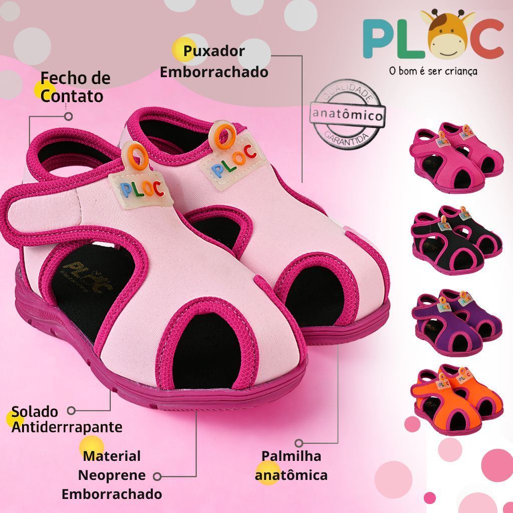 Papete Sandália Infantil Esportiva Casual Chinelo Calce Fácil Leve Respirável Ploc - Menina - PAP01