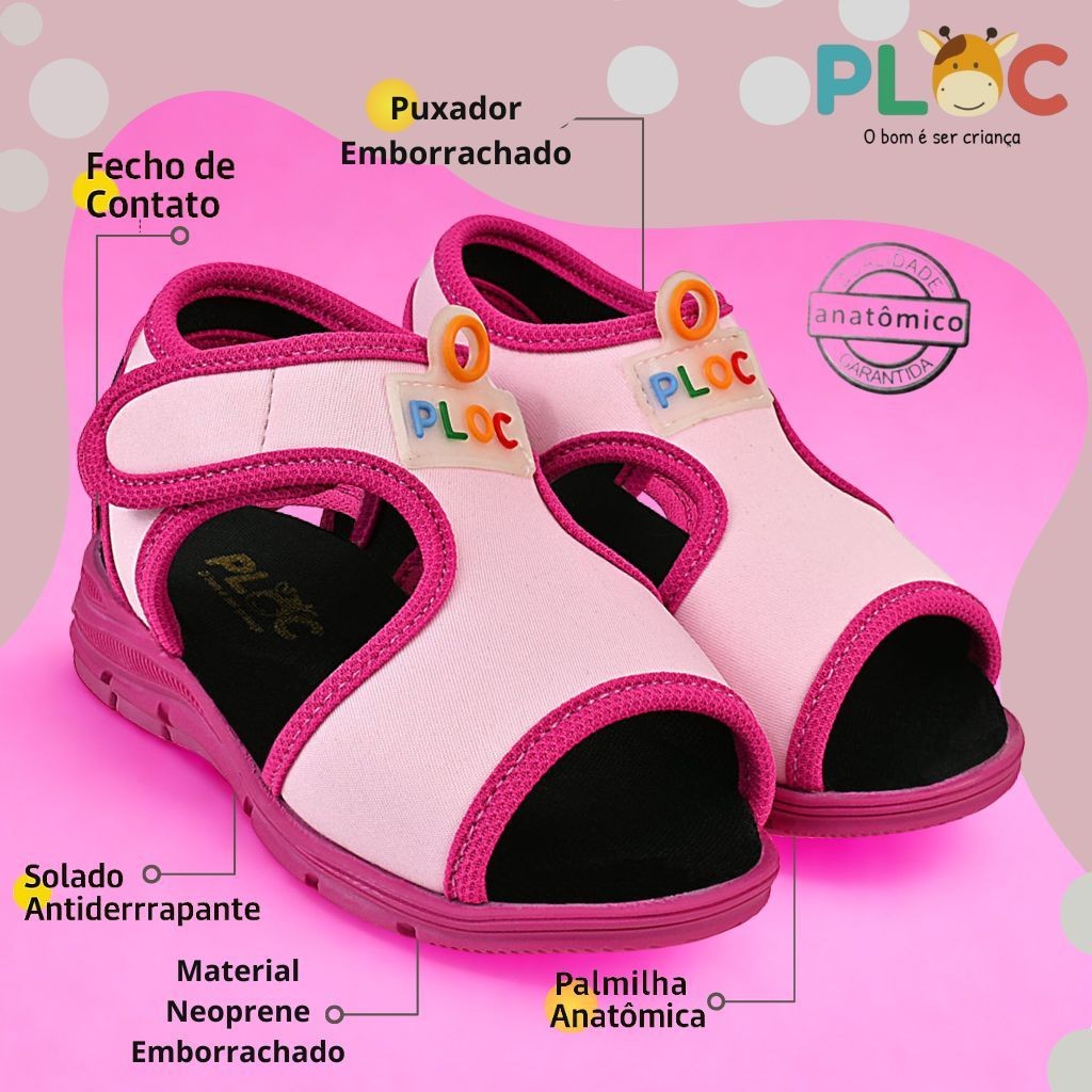 Papete Sandália Infantil Esportiva Casual Chinelo Calce Fácil Leve Respirável Ploc - Menina - PAP02