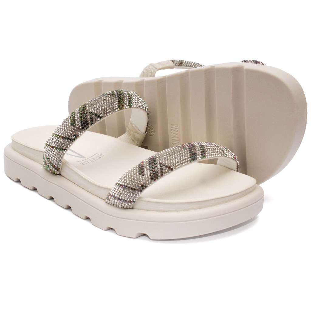 Papete Vizzano Feminina Strass Brilho Tratorada Original 6459.110 Off White