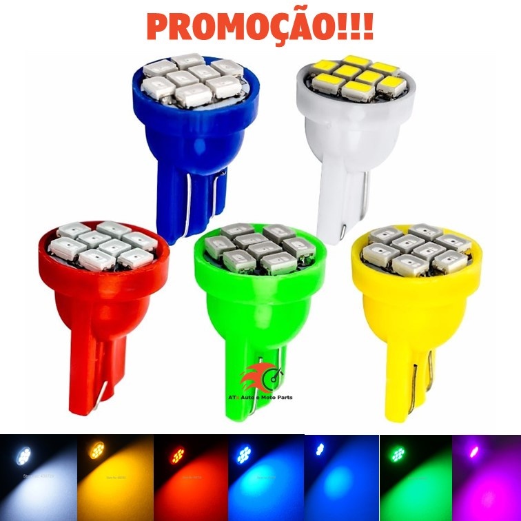 Par De Lâmpada T10 8 Leds Pingo 5 Cores Painel Cg Titan Fan Factor 125 150 160 Para Carro Moto